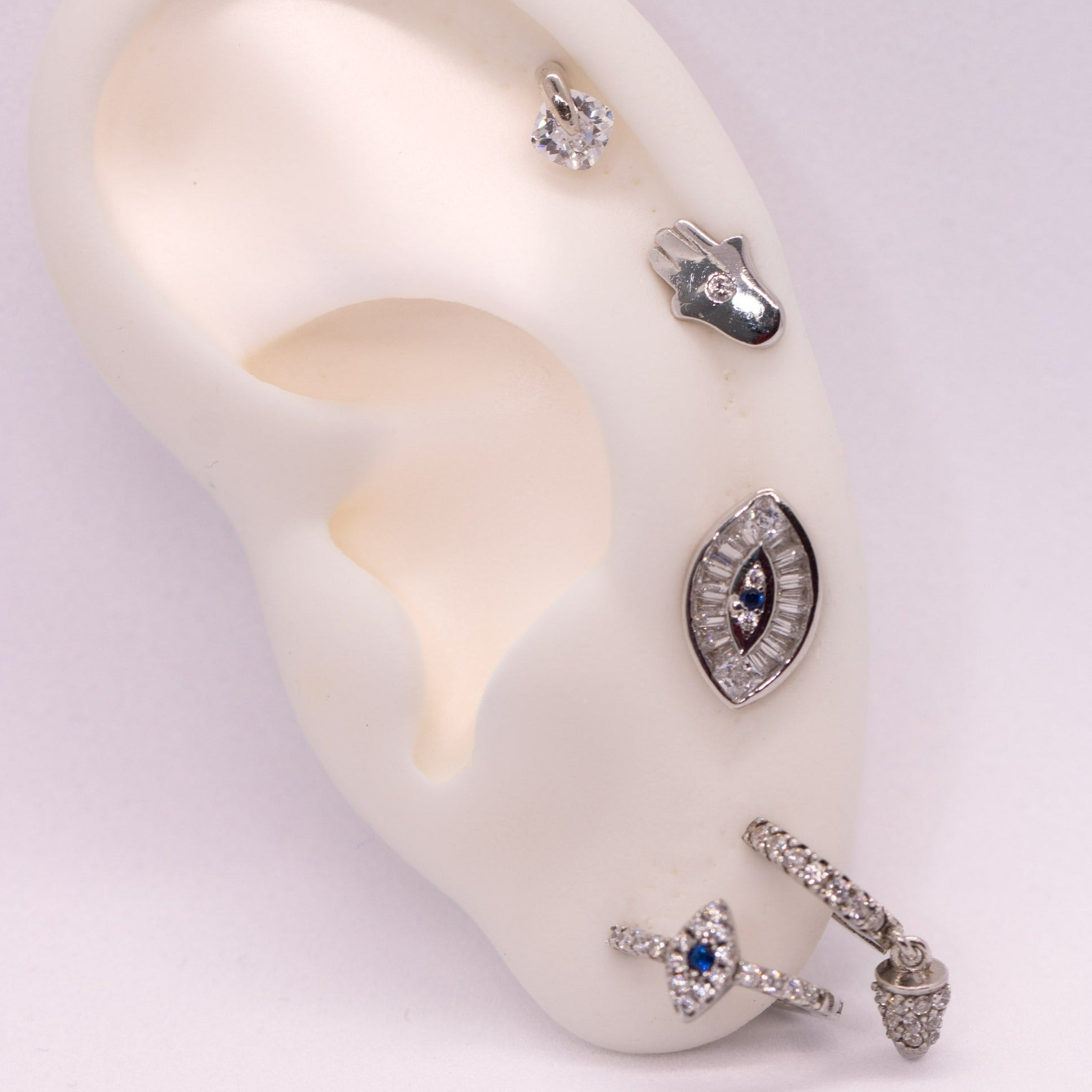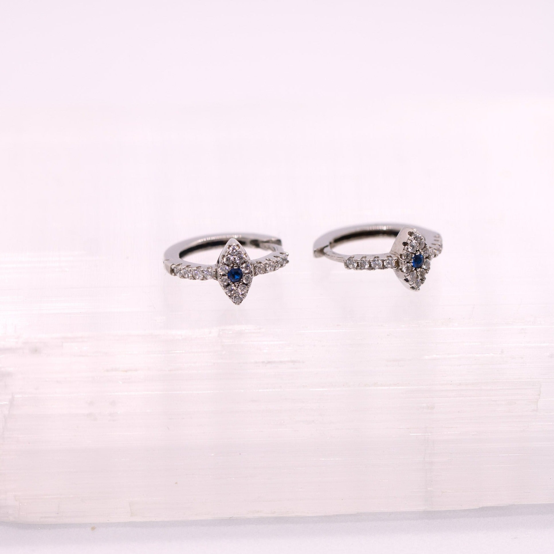 925 Sterling Silver CZ Evil Eye Huggie Hoop Earrings