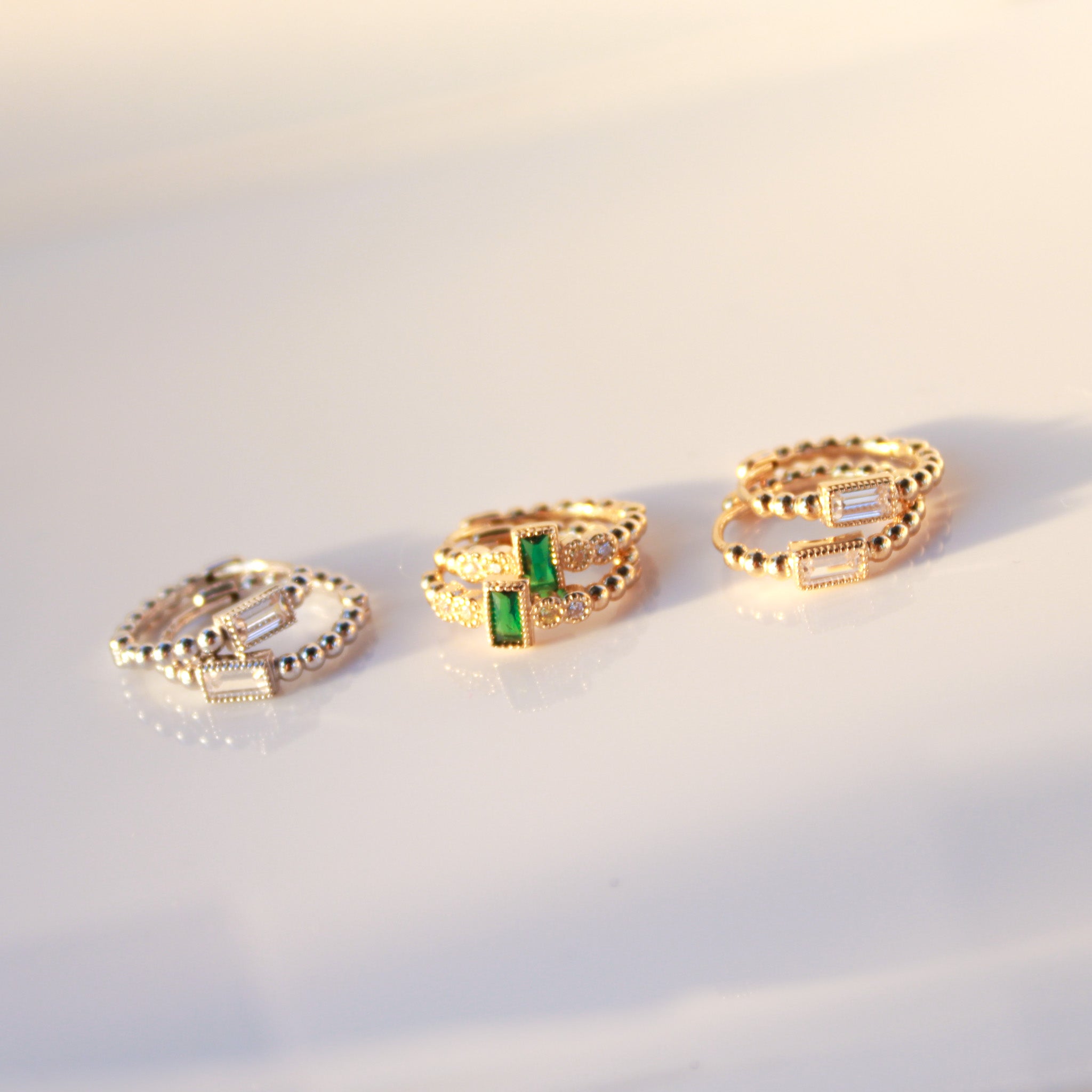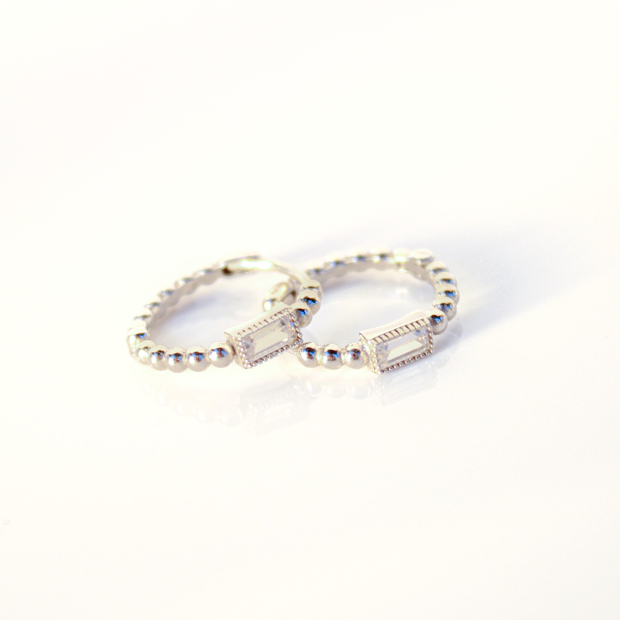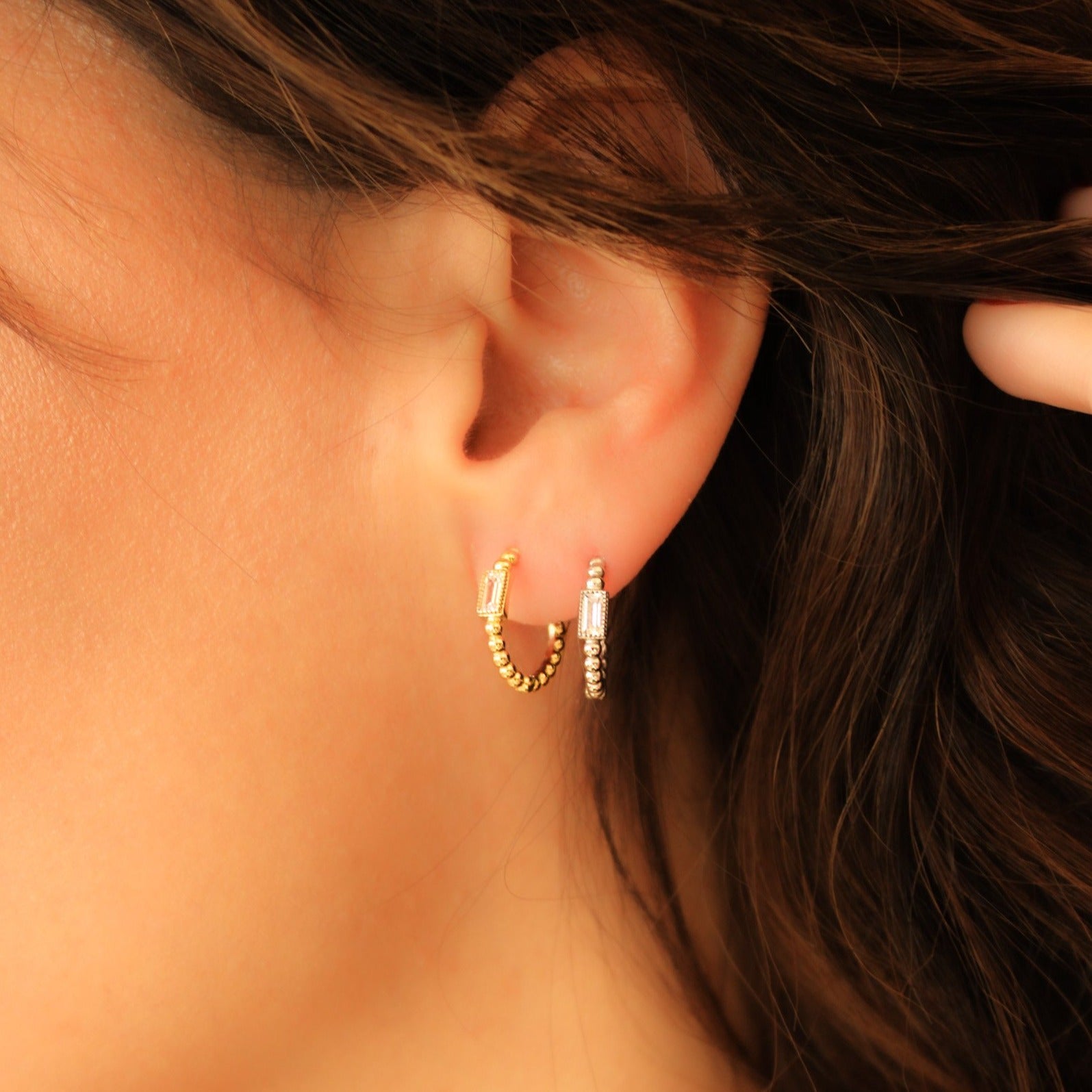 14K Solid White CZ and Beads Huggie Hoops