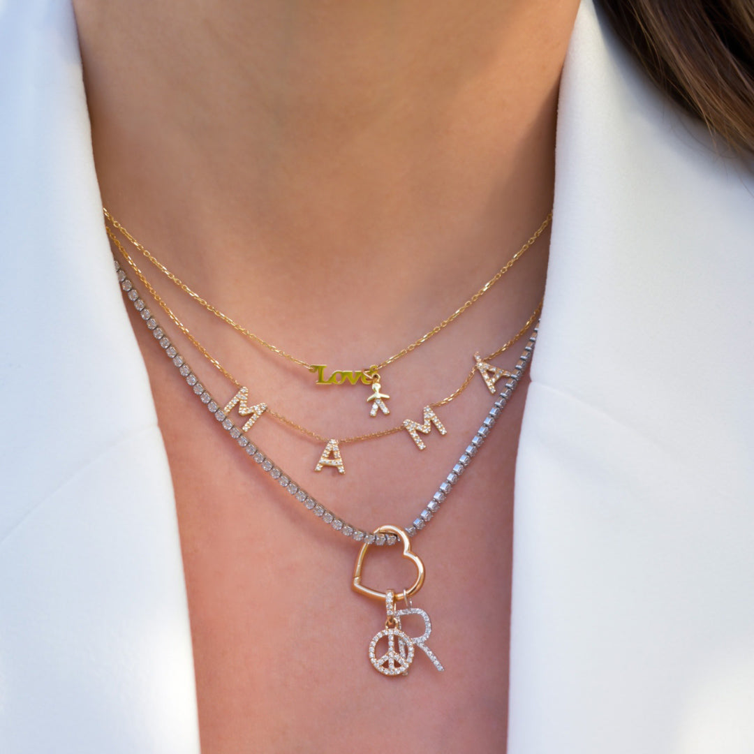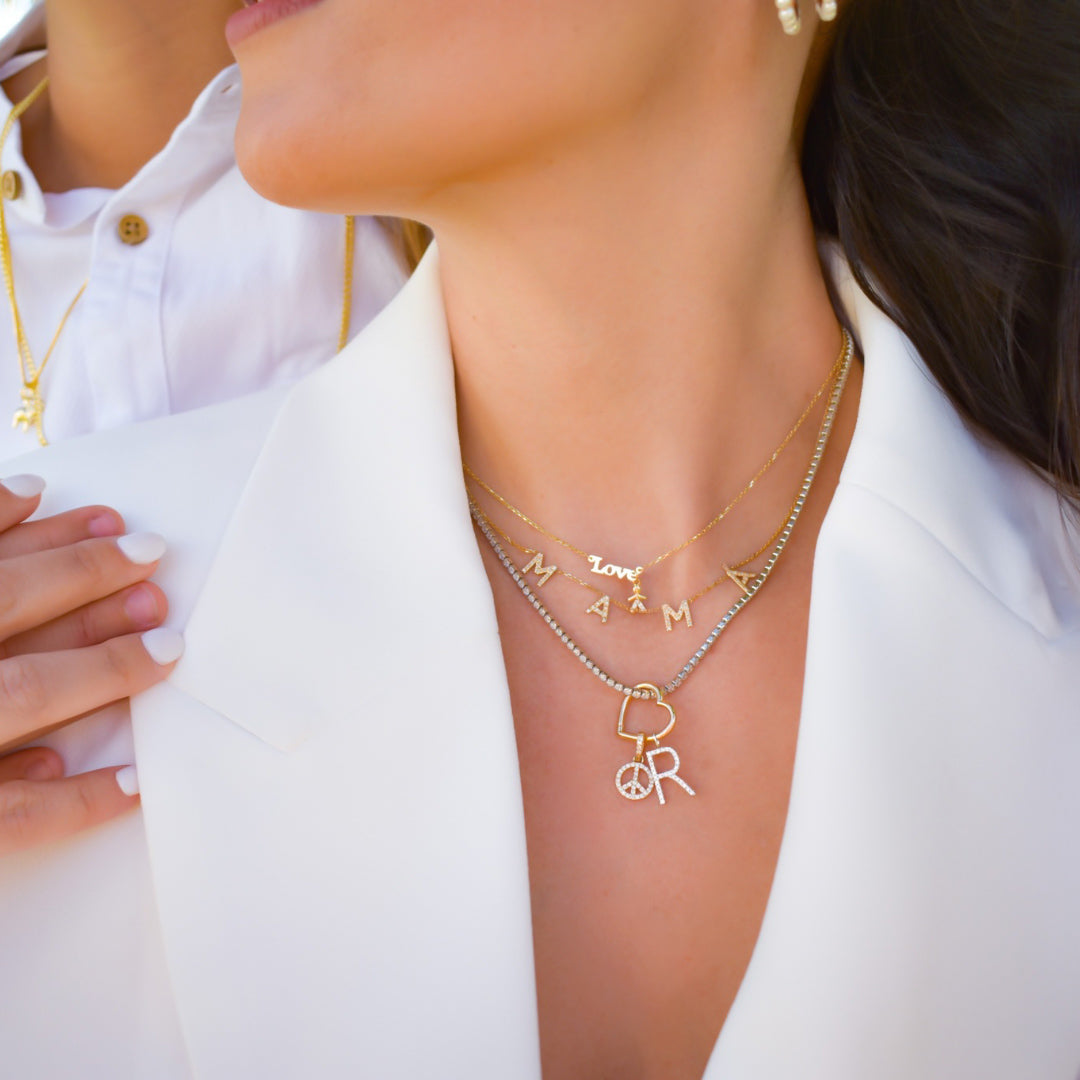 This 14K gold block custom name necklace is a timeless piece. Expertly crafted that brings your custom creation to life. Show your love by wearing the name of the one you cherish. Stacked or solo you will love the look of this special necklace.