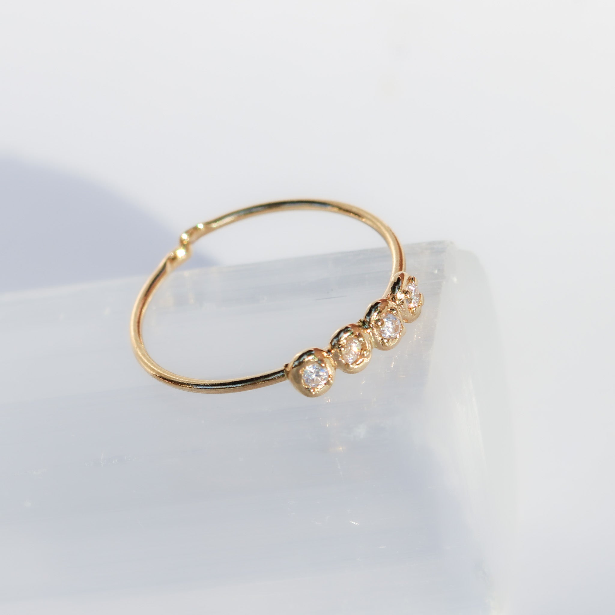 14K Solid Yellow Gold Adjustable Pinky / Midi or Toe Ring with Cubic Zirconias