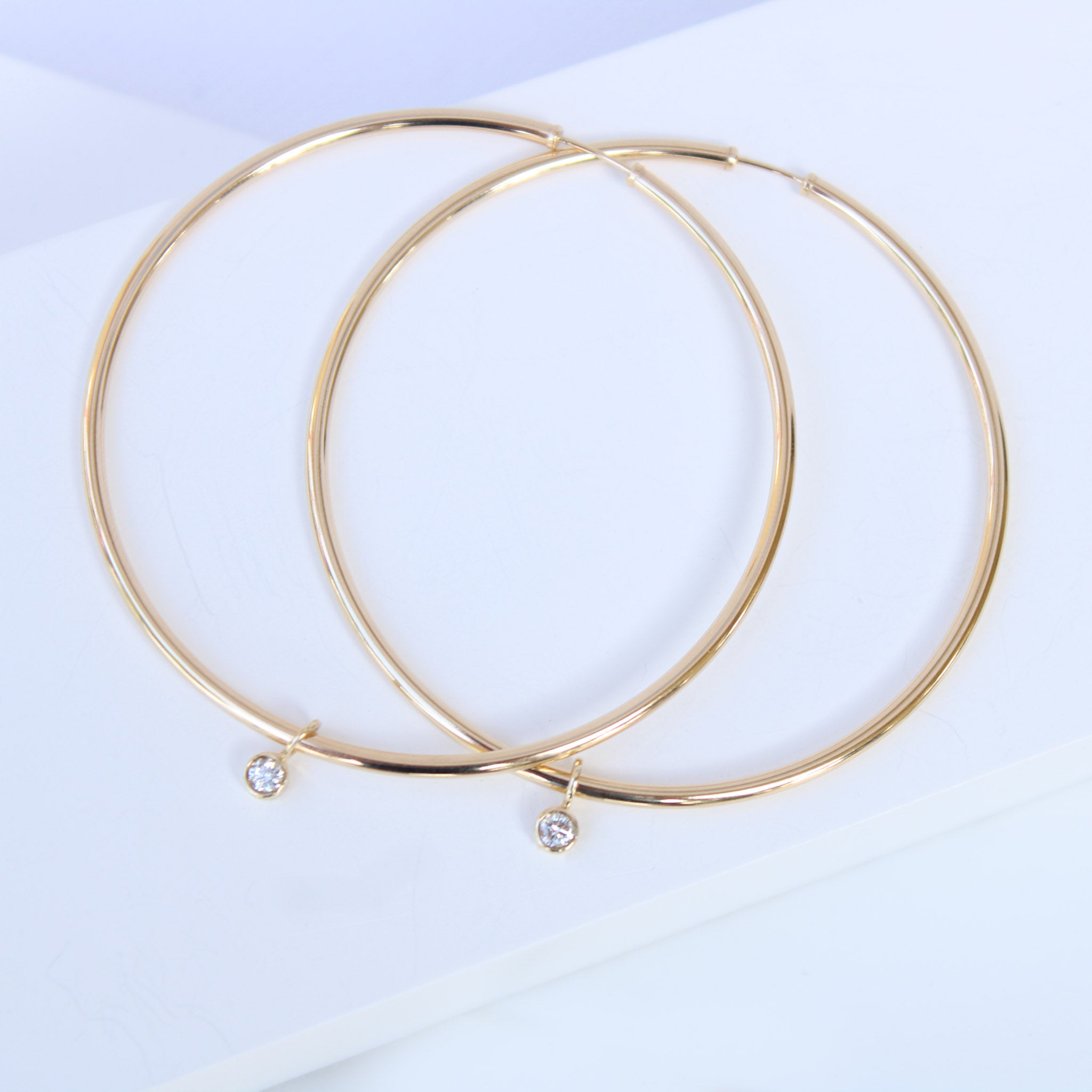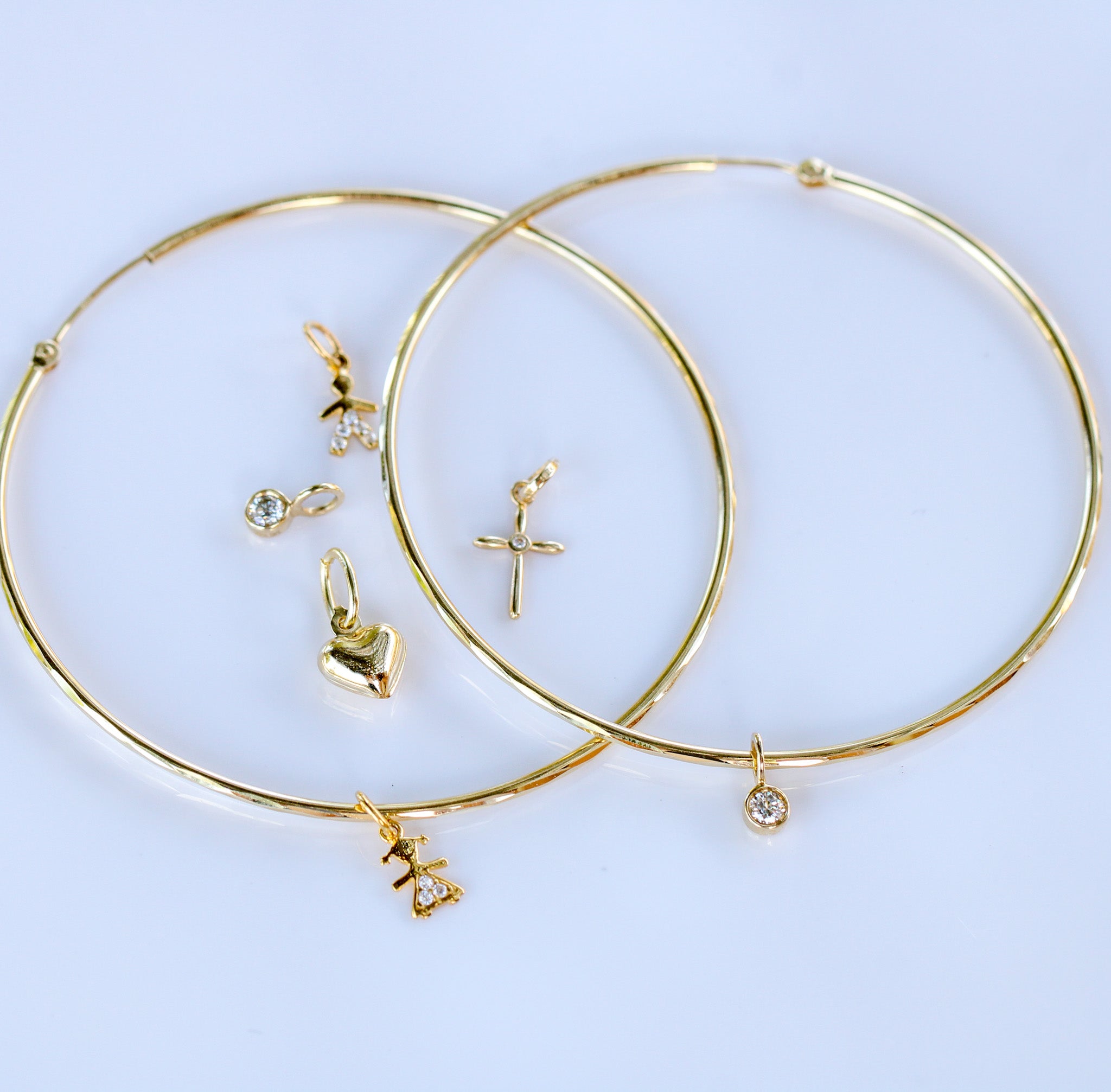 14K Solid Yellow Gold Bezel Diamond Earring Charms