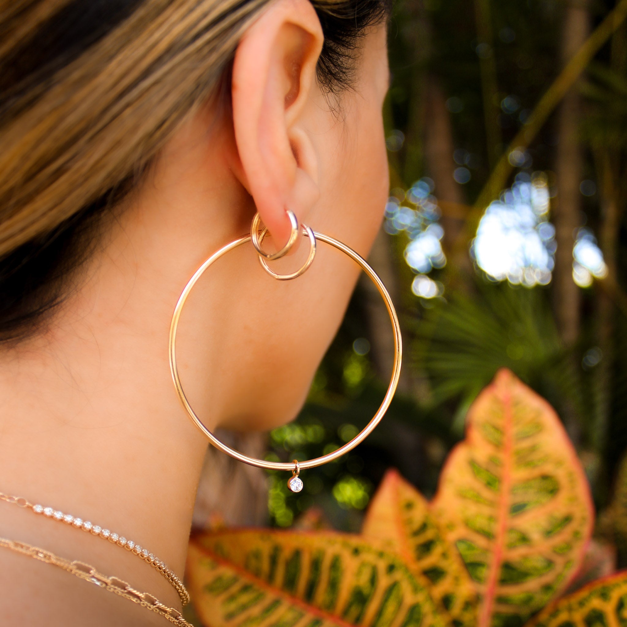 Set of two bezel diamond charms. Complete your look with a favorite pair of earrings in your collection.
