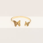 14K Solid Yellow Gold Butterflies Cuff Ring