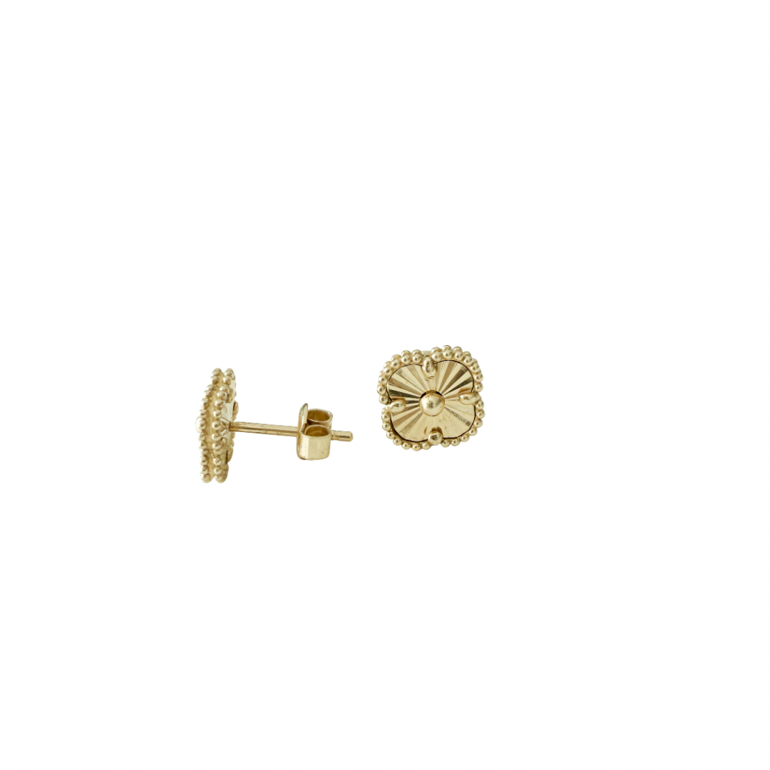 14K Solid Yellow Gold Clover Stud Earrings