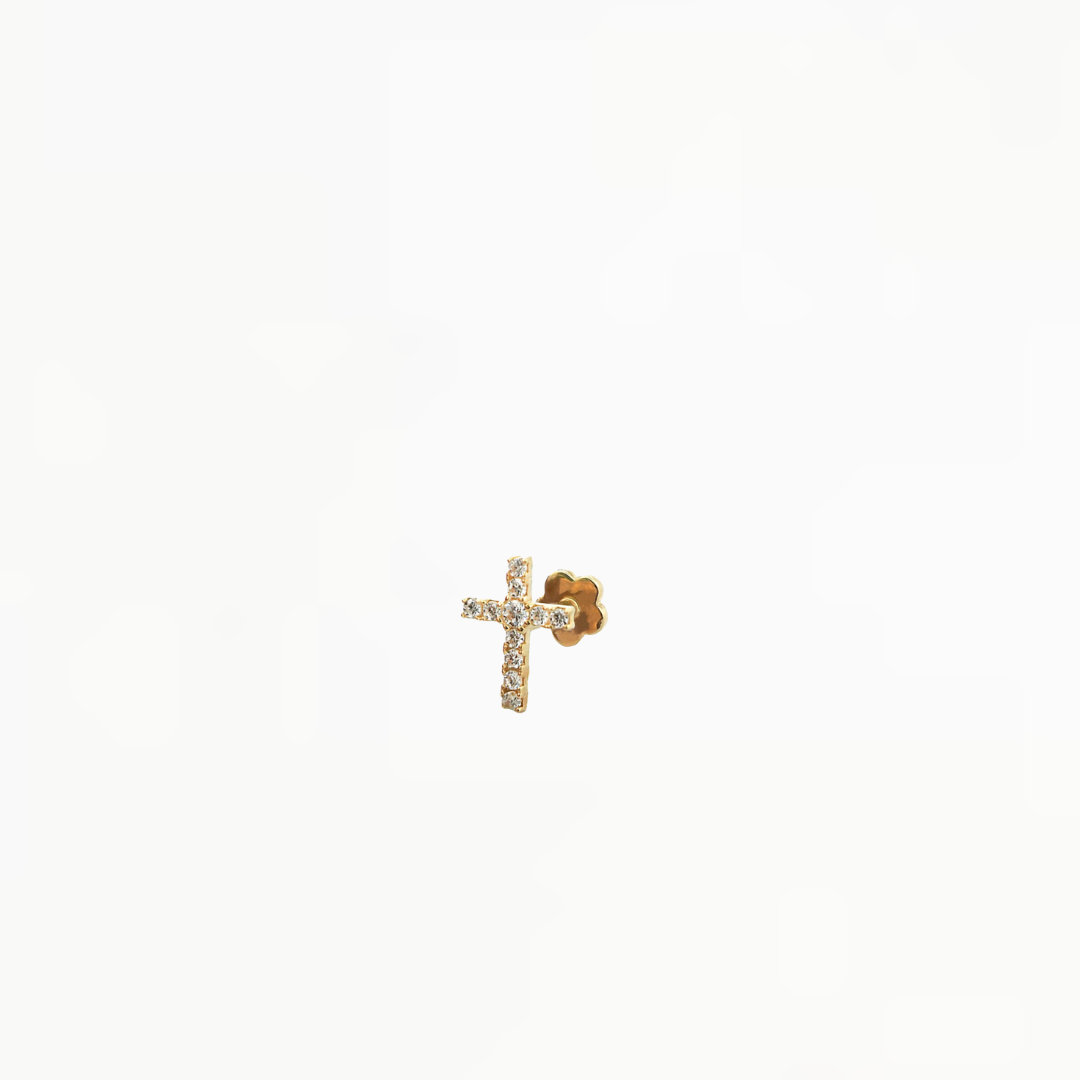 14K Solid Yellow Gold Cubic Zirconia Cross Piercing Earring – Elegant Symbolic Jewelry