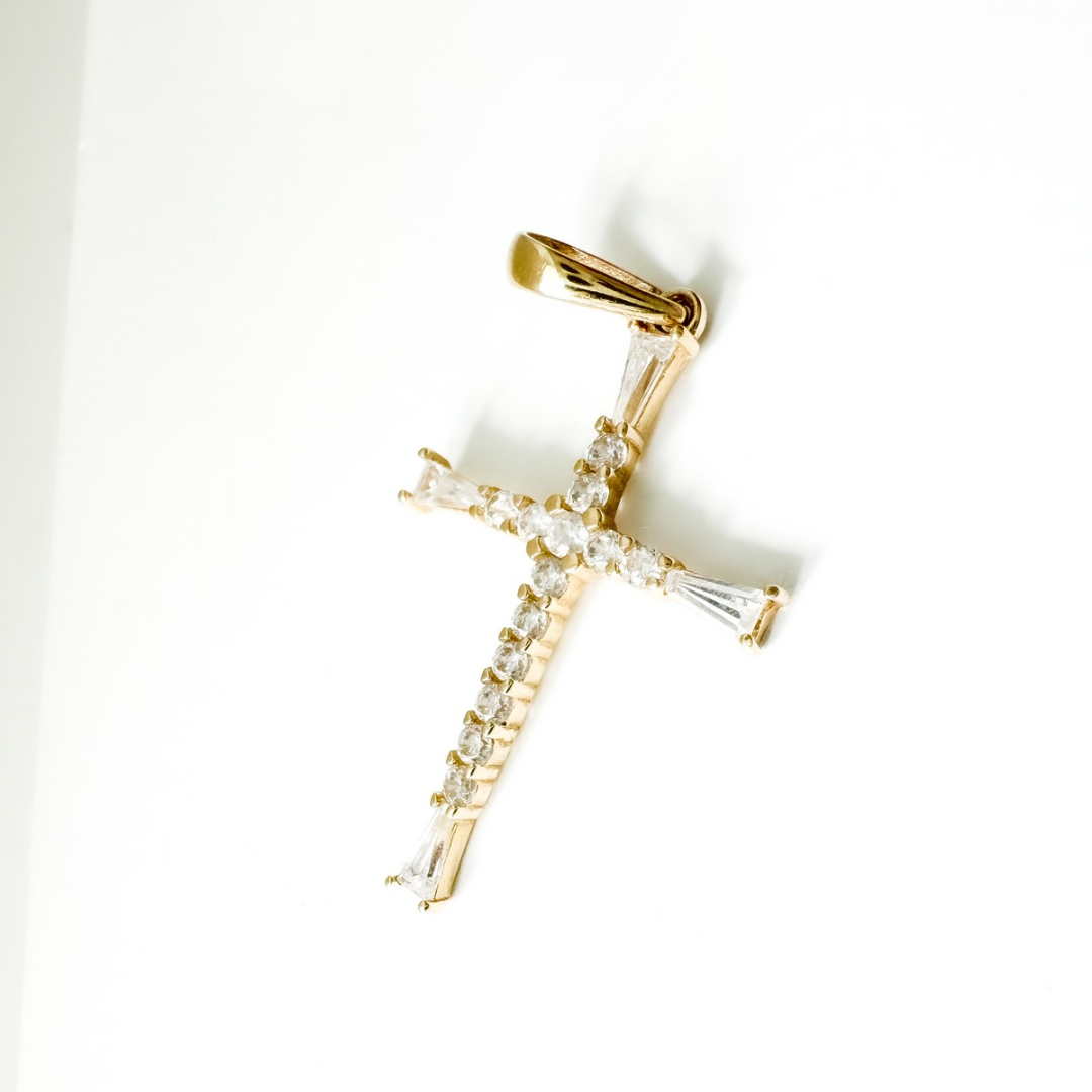 14K Solid Yellow Gold Cubic Zirconias Cross Pendant