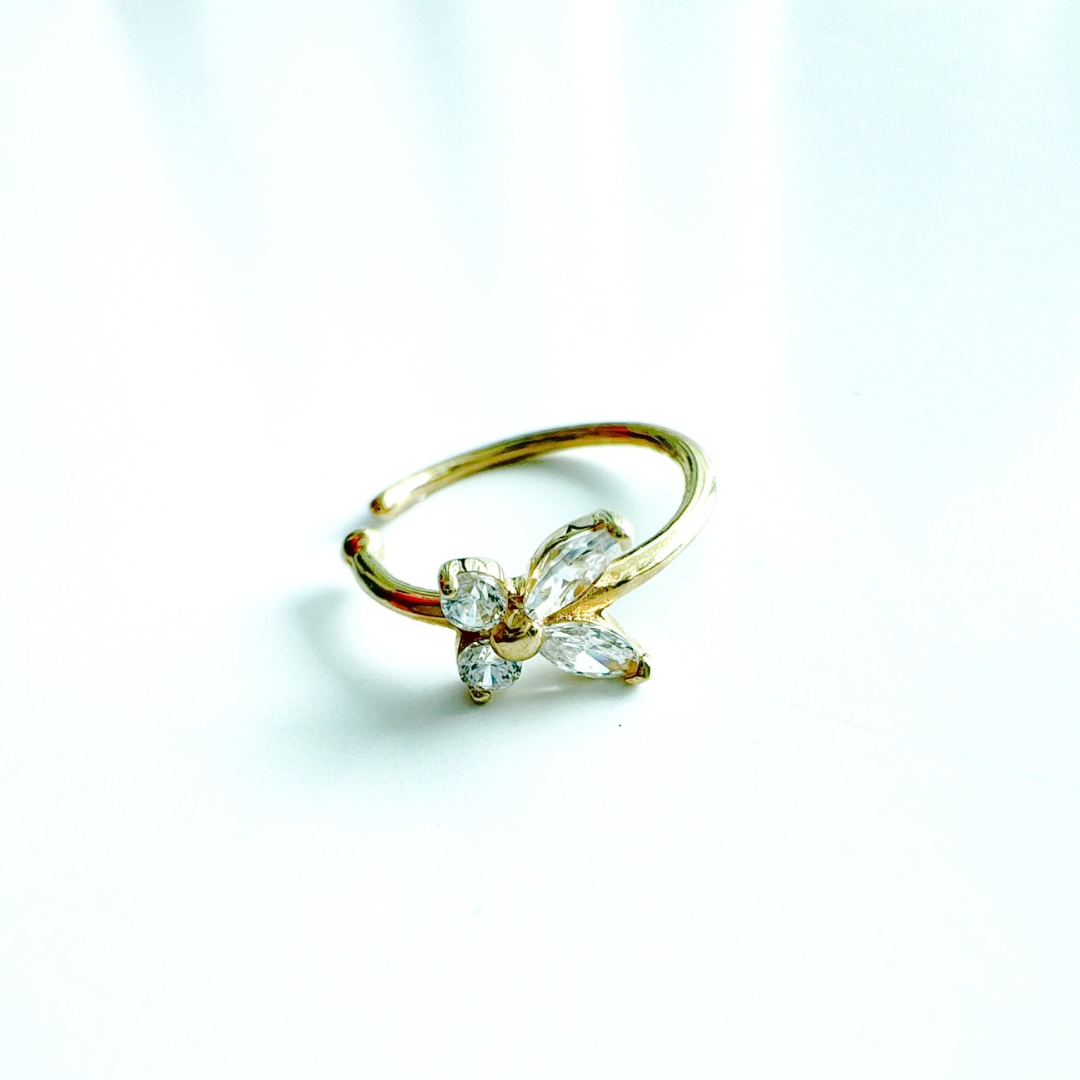 14K Solid Yellow Gold CZ Butterfly Nose Ring Hoop