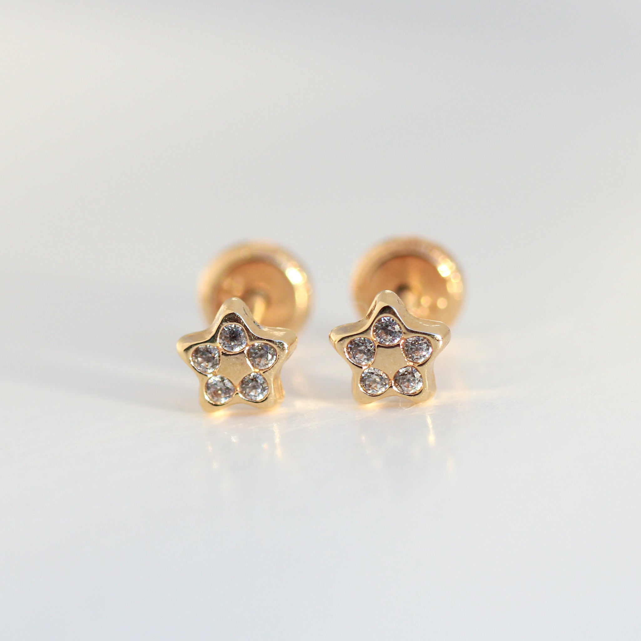 14K Solid Yellow Gold CZ Mini Star Earrings