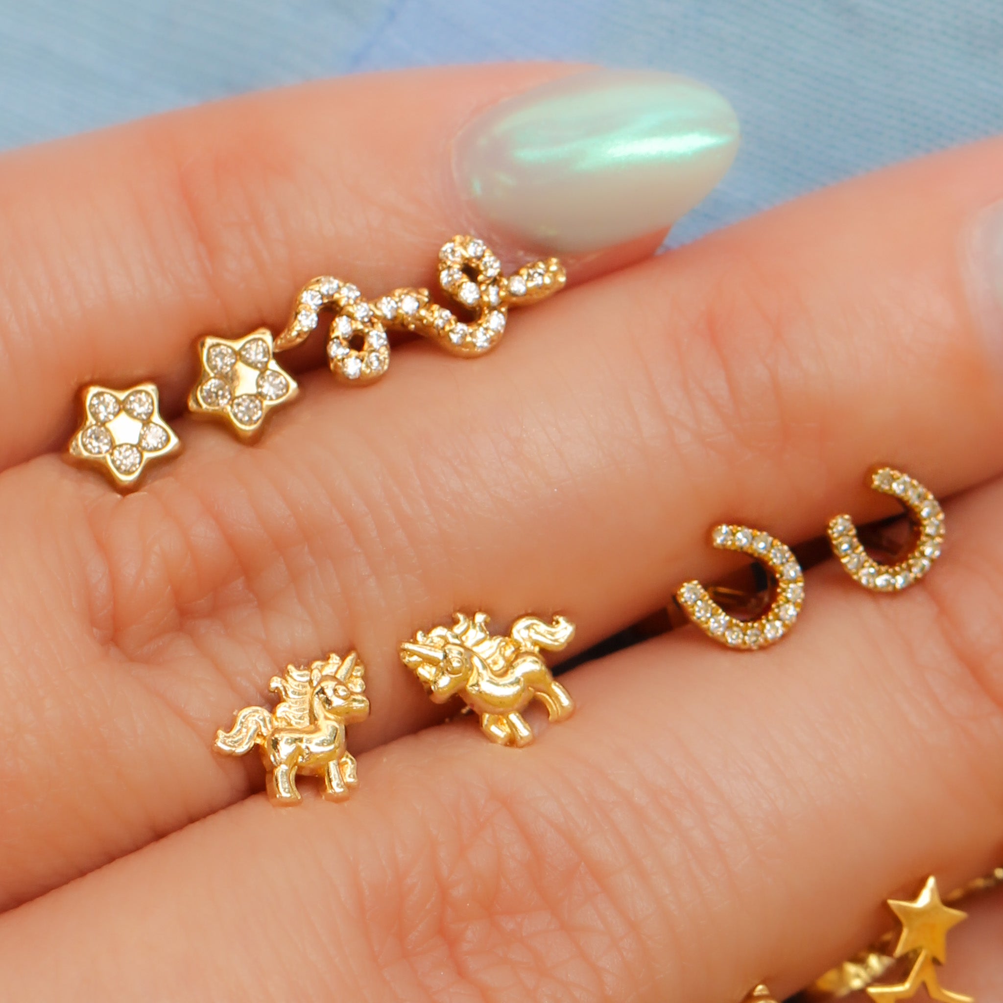 Little star studs are something no ear should go without. Handcrafted in 14k solid yellow gold, a piece you can hold onto forever. These are great stacking studs, pair with hoops or other studs.