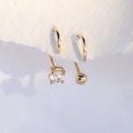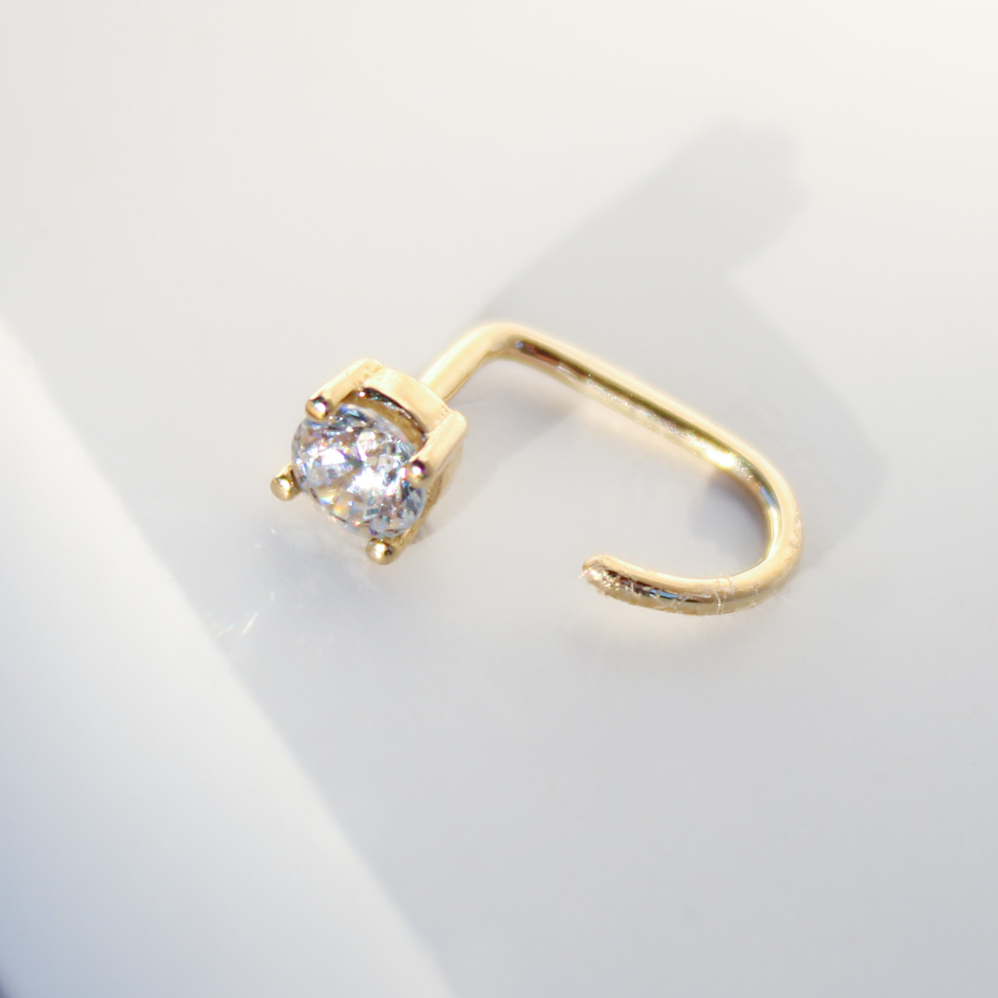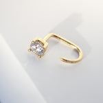 14K Solid Yellow Gold CZ Solitaire Backward Hoop Earring