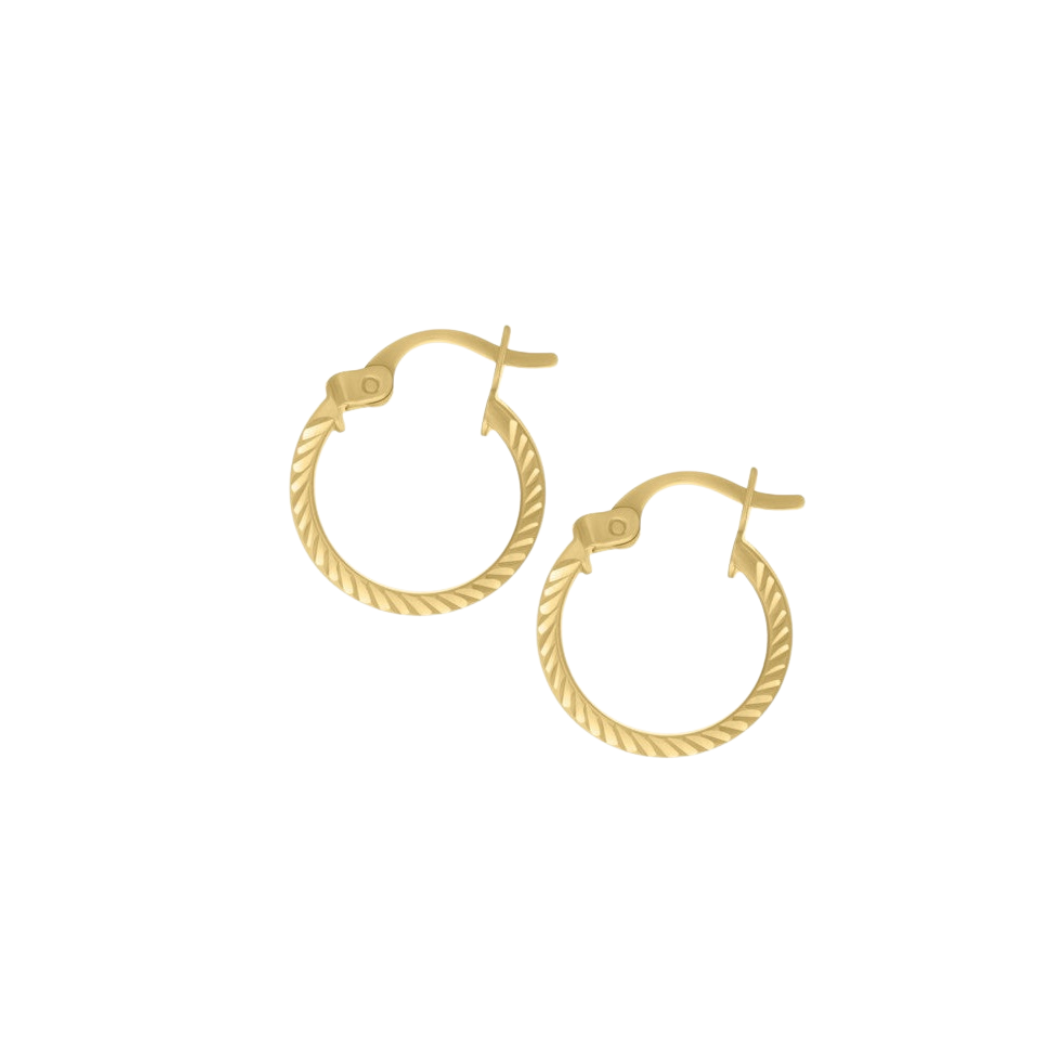 14K Solid Yellow Gold Diamond Cut Hoops Earrings