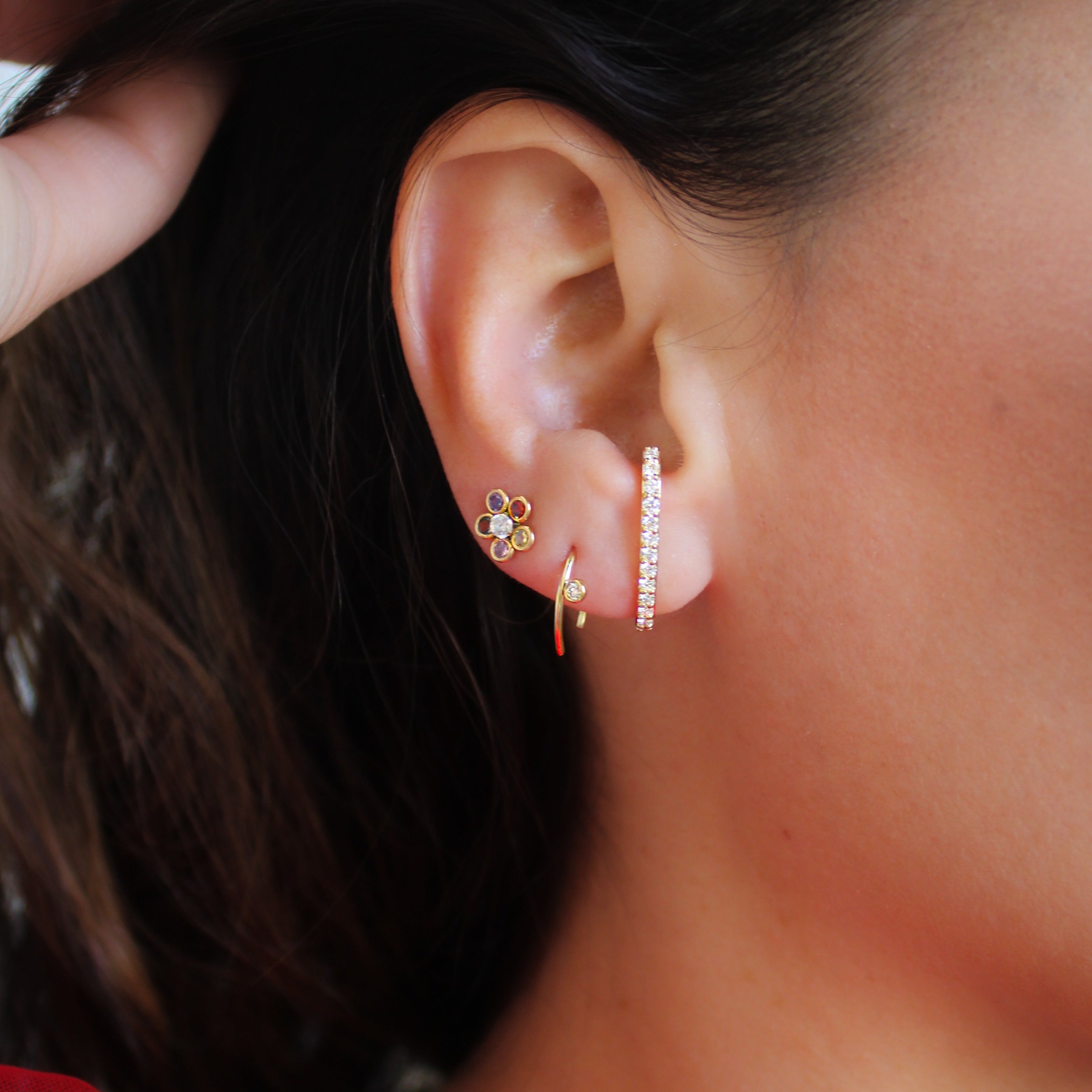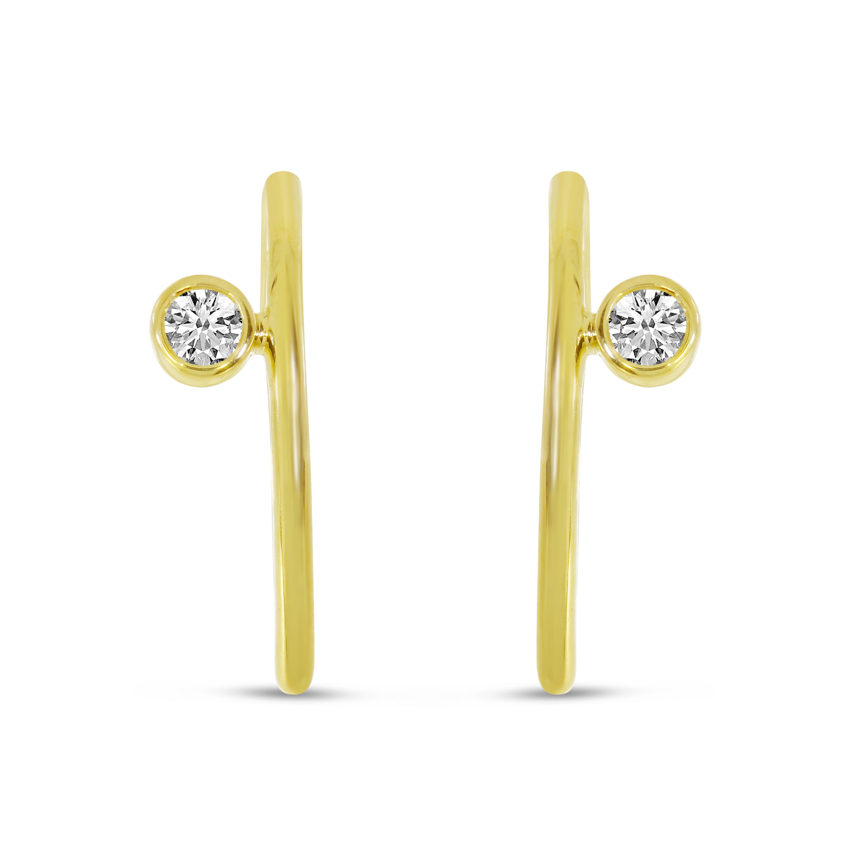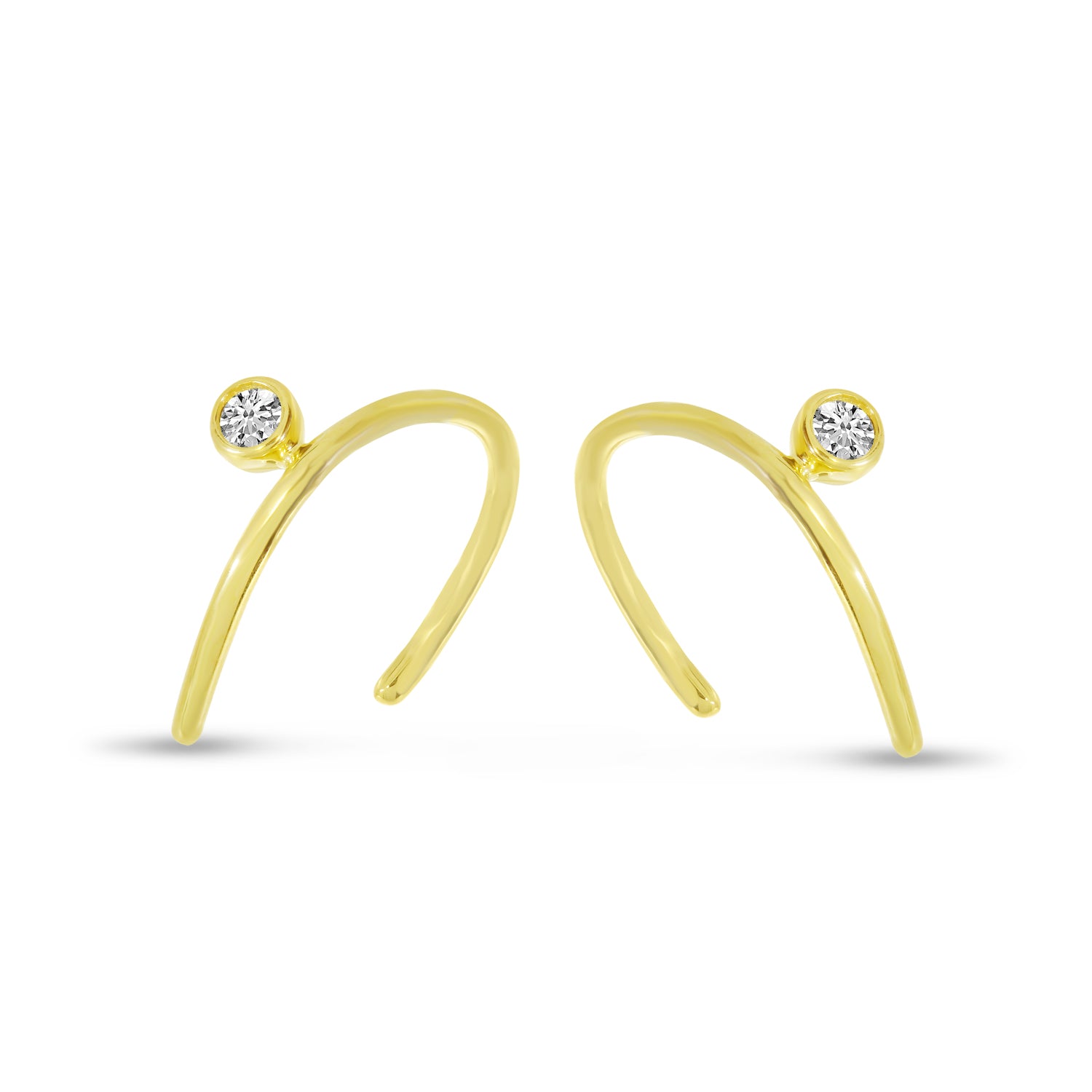 Sparkling round cut diamond set in yellow gold shaped like a horseshoe for good luck everywhere you go! A playful option to update your look, these versatile earring mix and match easily with other studs. Is a sweet alternative to more traditional diamond studs and even work well in a second piercing!
