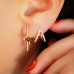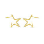 14K Solid Yellow Gold Diamond Stars Hoop Earrings