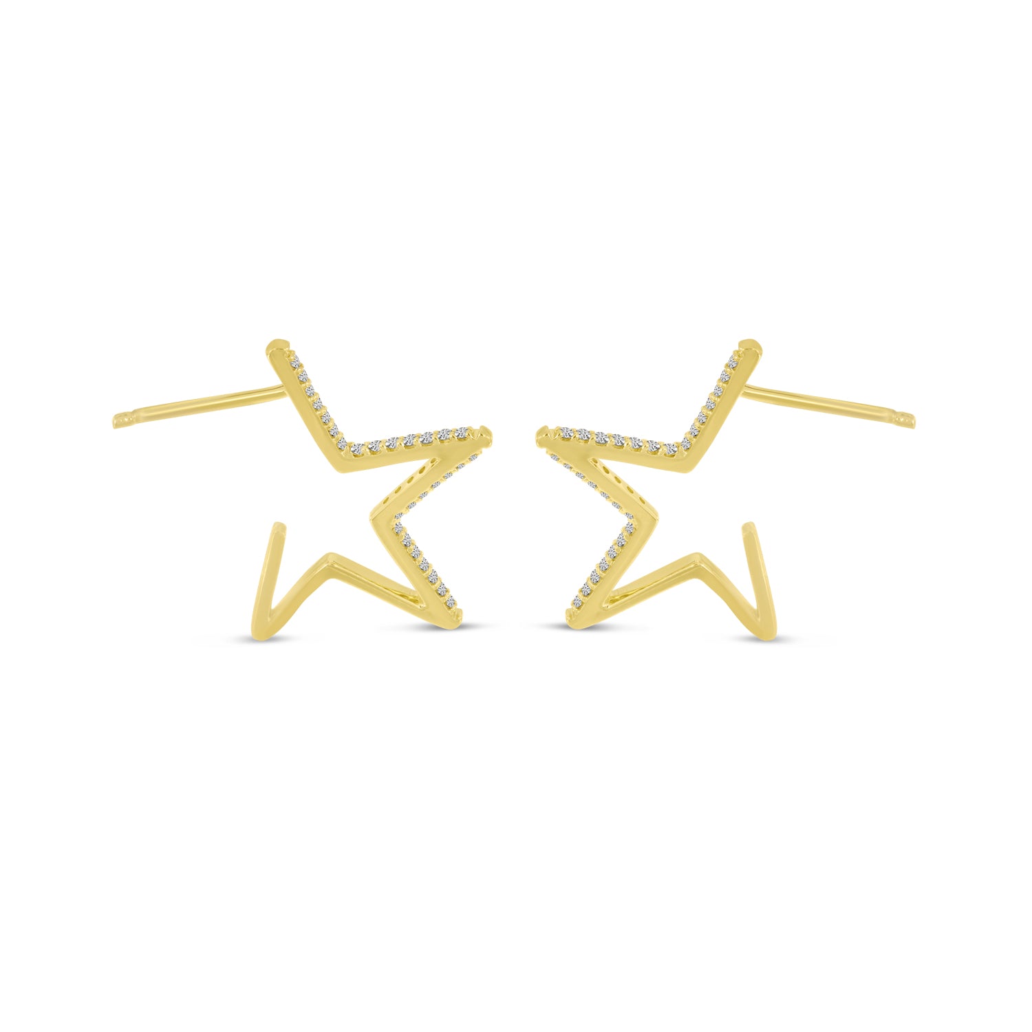 Be the star of the show with our diamonds star hoops earrings giving you the perfect look. Feature round cut diamonds all around the edge of the star.
