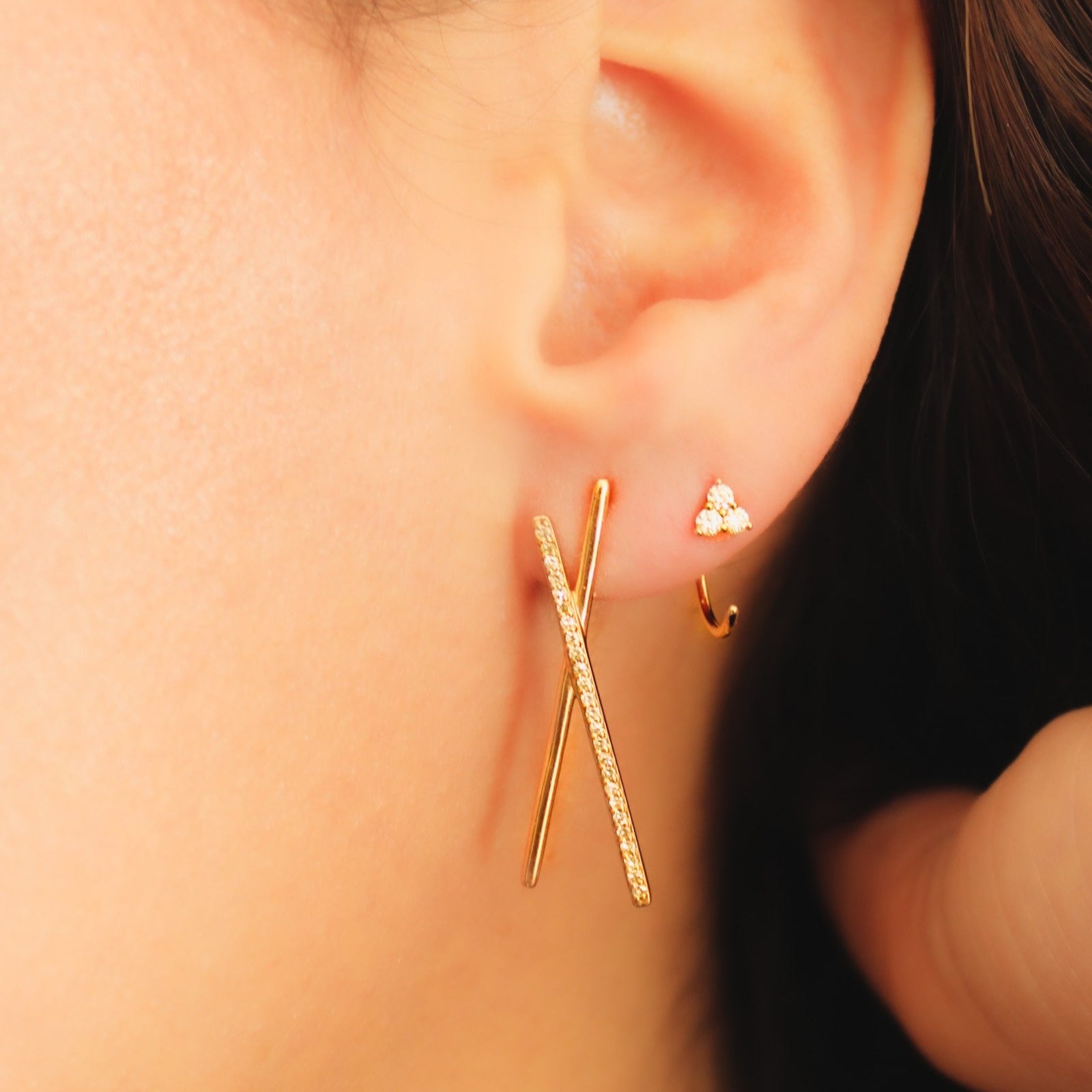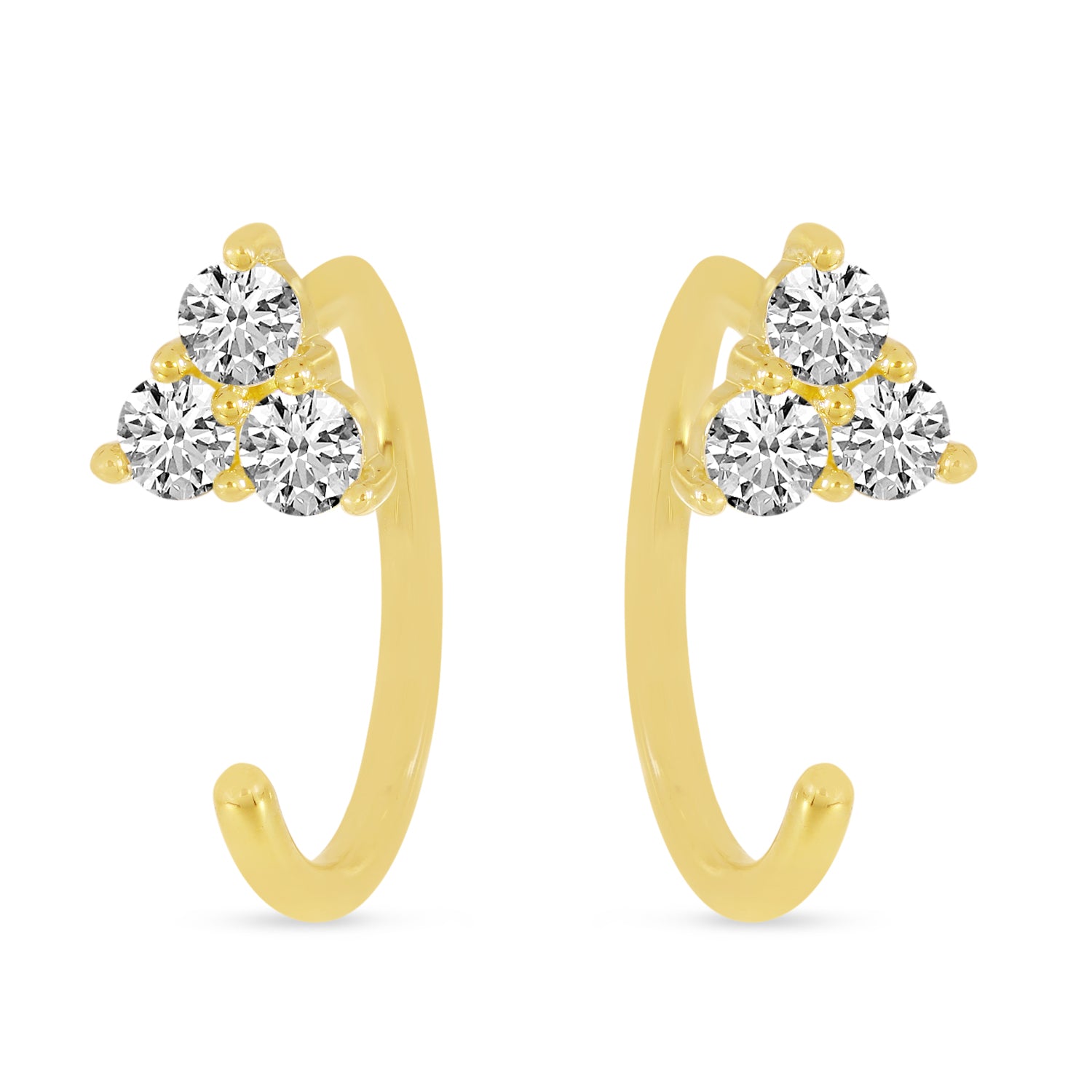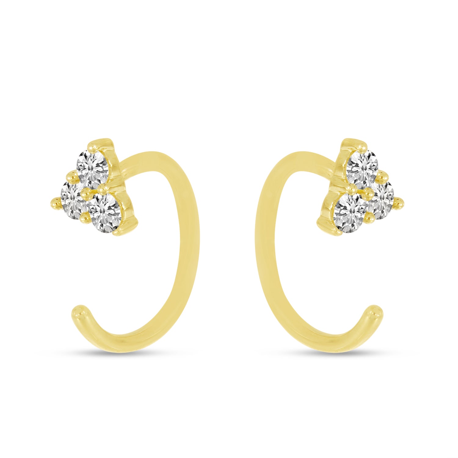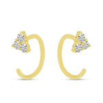 14K Solid Yellow Gold Diamond Triangle Stud Backward Hoop Earring