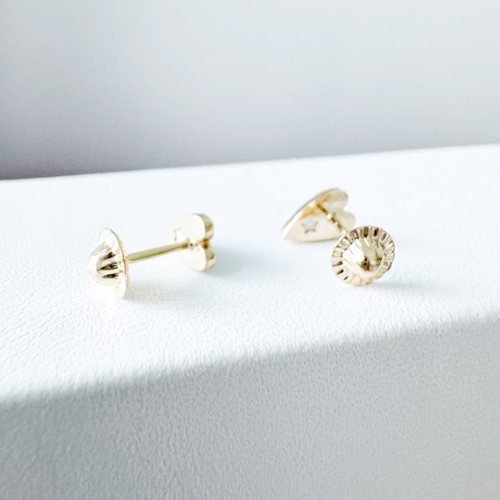 14K Solid Yellow Gold Elongated Heart Mother of Pearl Stud Earrings