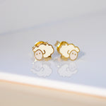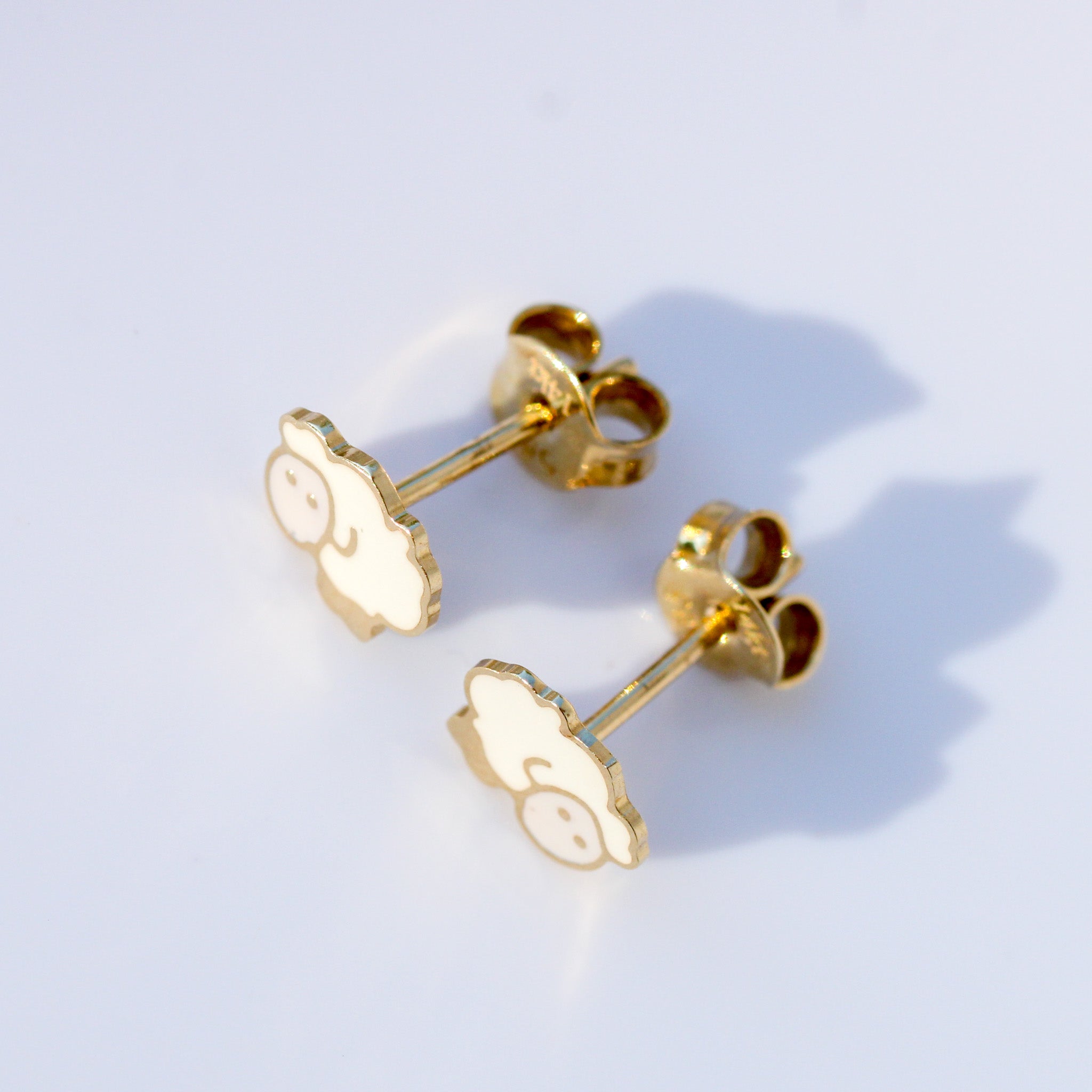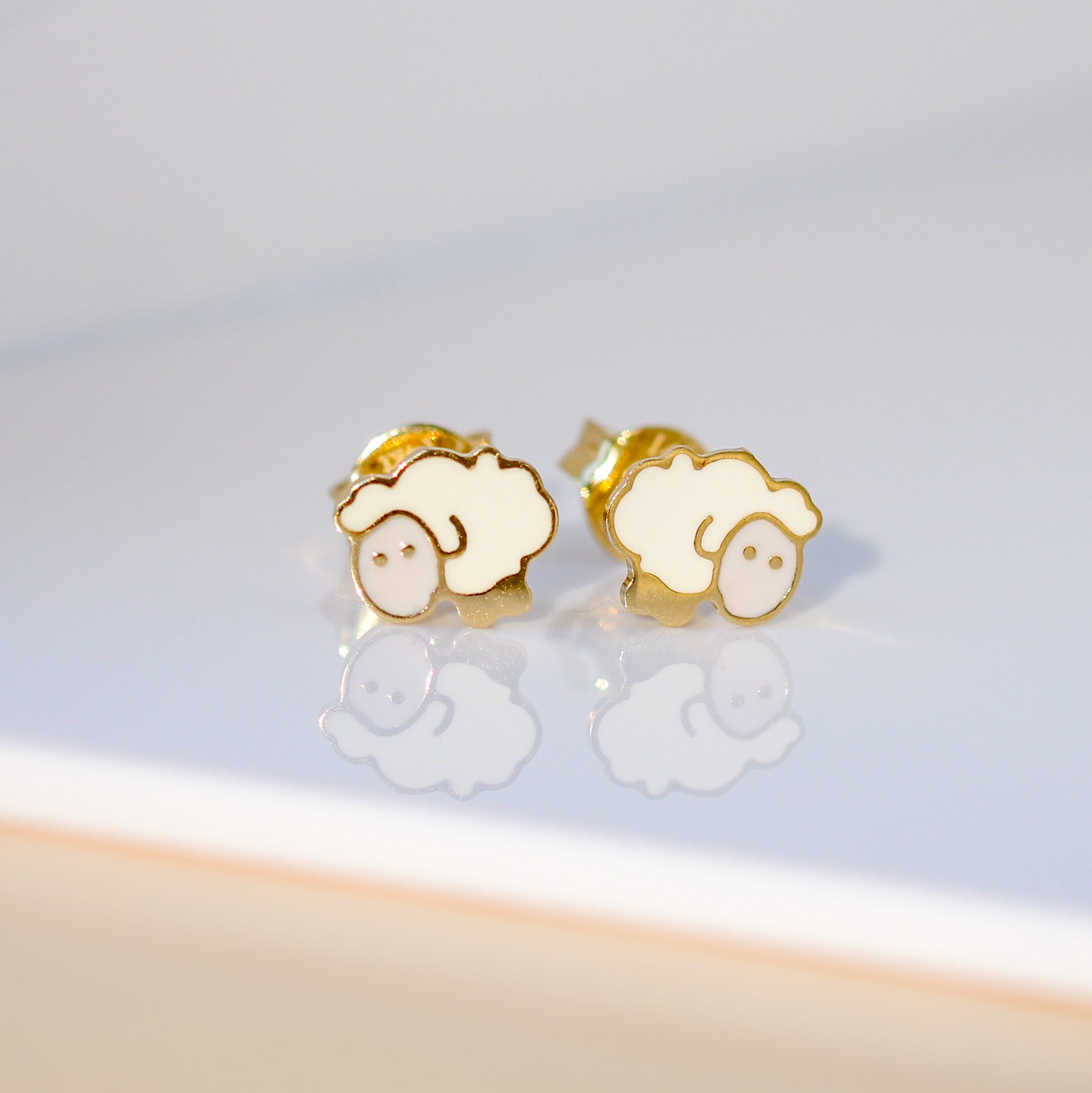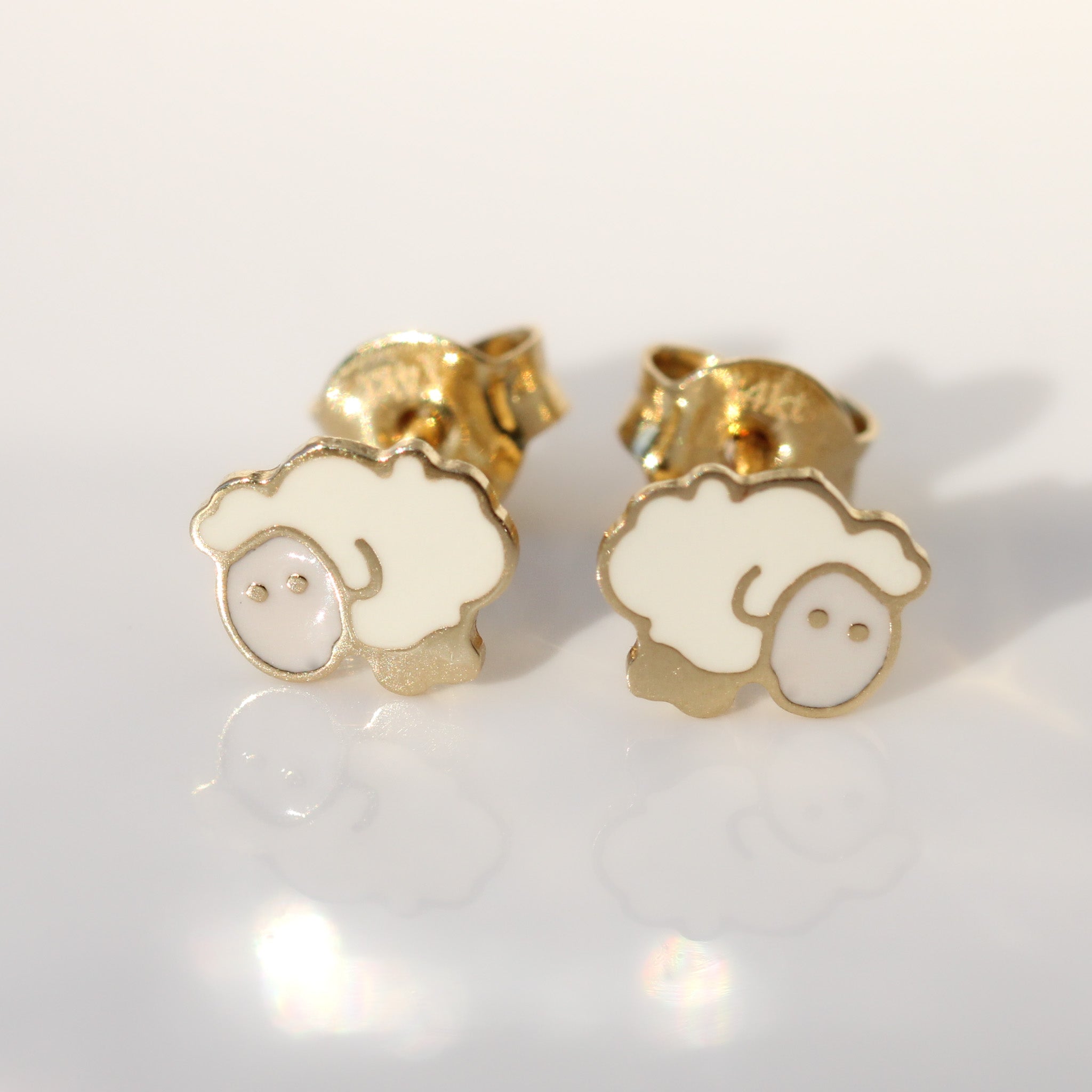 14K Solid Yellow Gold Enamel Sheep Earrings