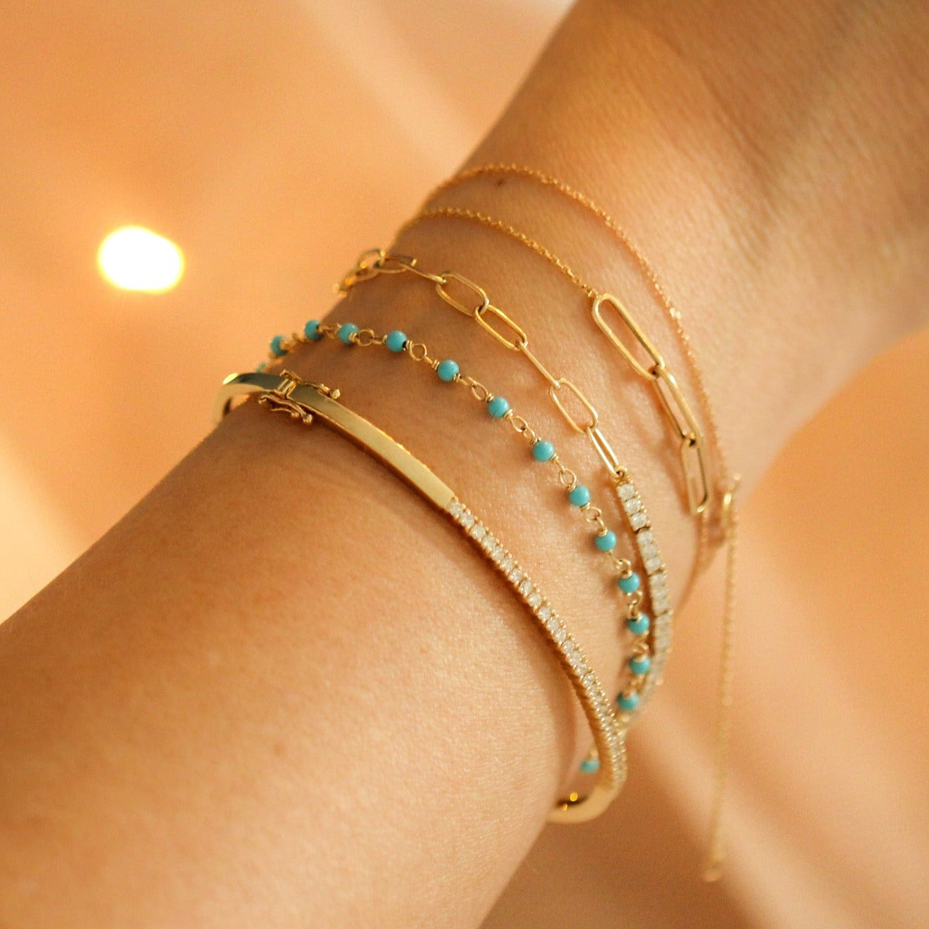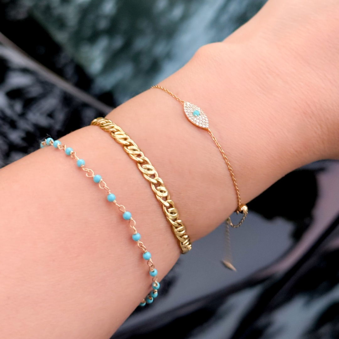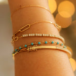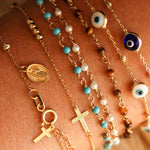 Add a touch of color and elegance to your wrist with this 14K Solid Yellow Gold Genuine Stones Bracelet. Featuring a combination of Onyx, Turquoise, Pearls, and Tiger Eye stones set in 14K yellow gold, this bracelet blends vibrant gemstones with luxurious craftsmanship. Perfect for layering or wearing alone, it’s a versatile and meaningful accessory for any occasion.
