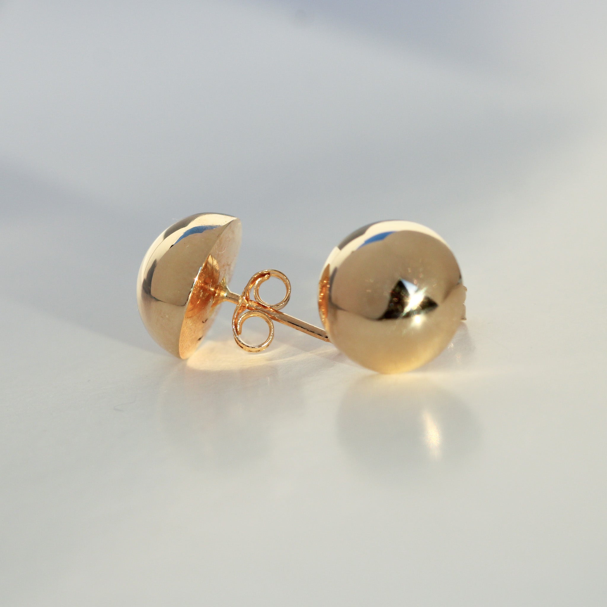 14K Solid Yellow Gold Half Ball Stud Earrings