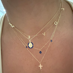 14K Solid Yellow Gold Italian Miraculous Medal with Lapis Lazuli