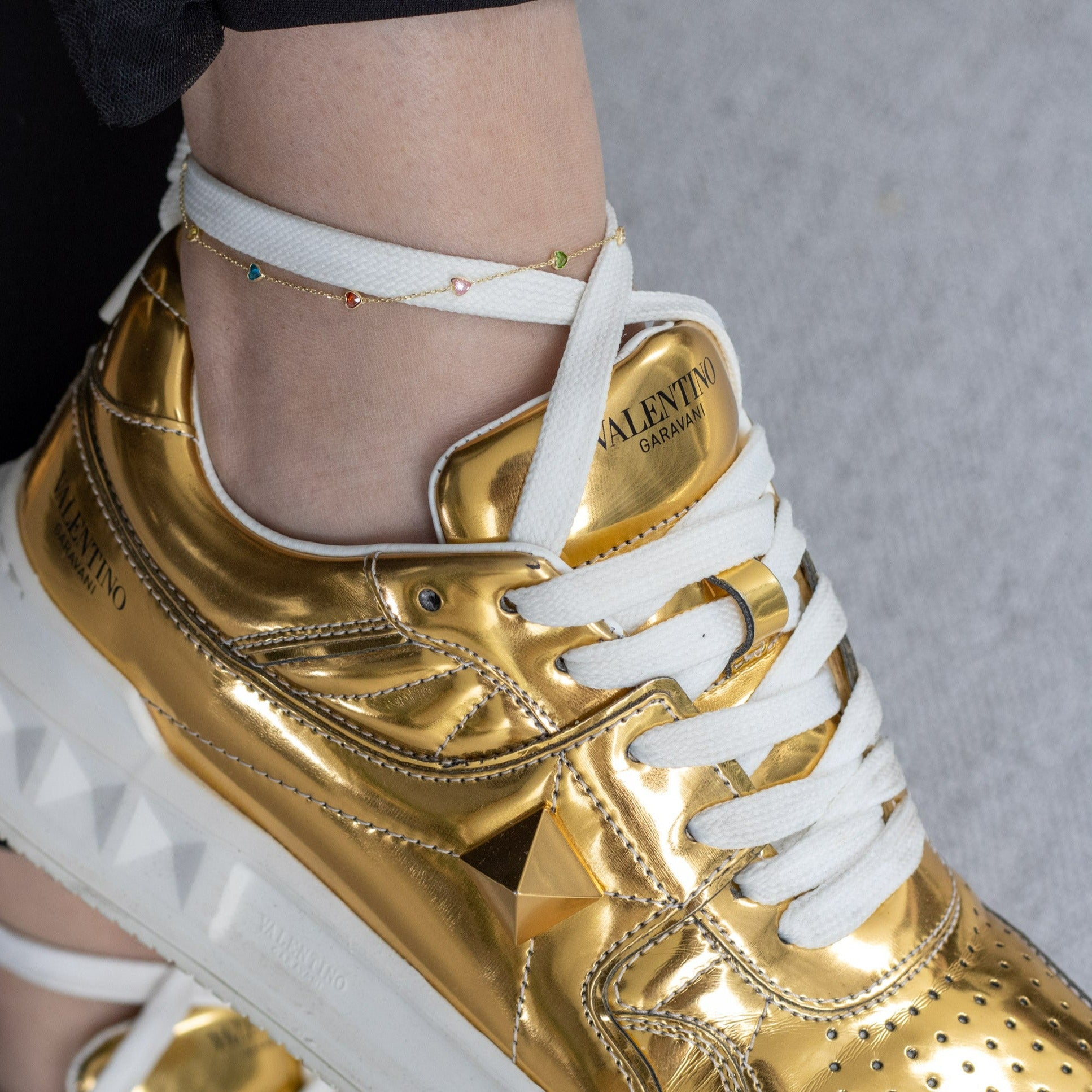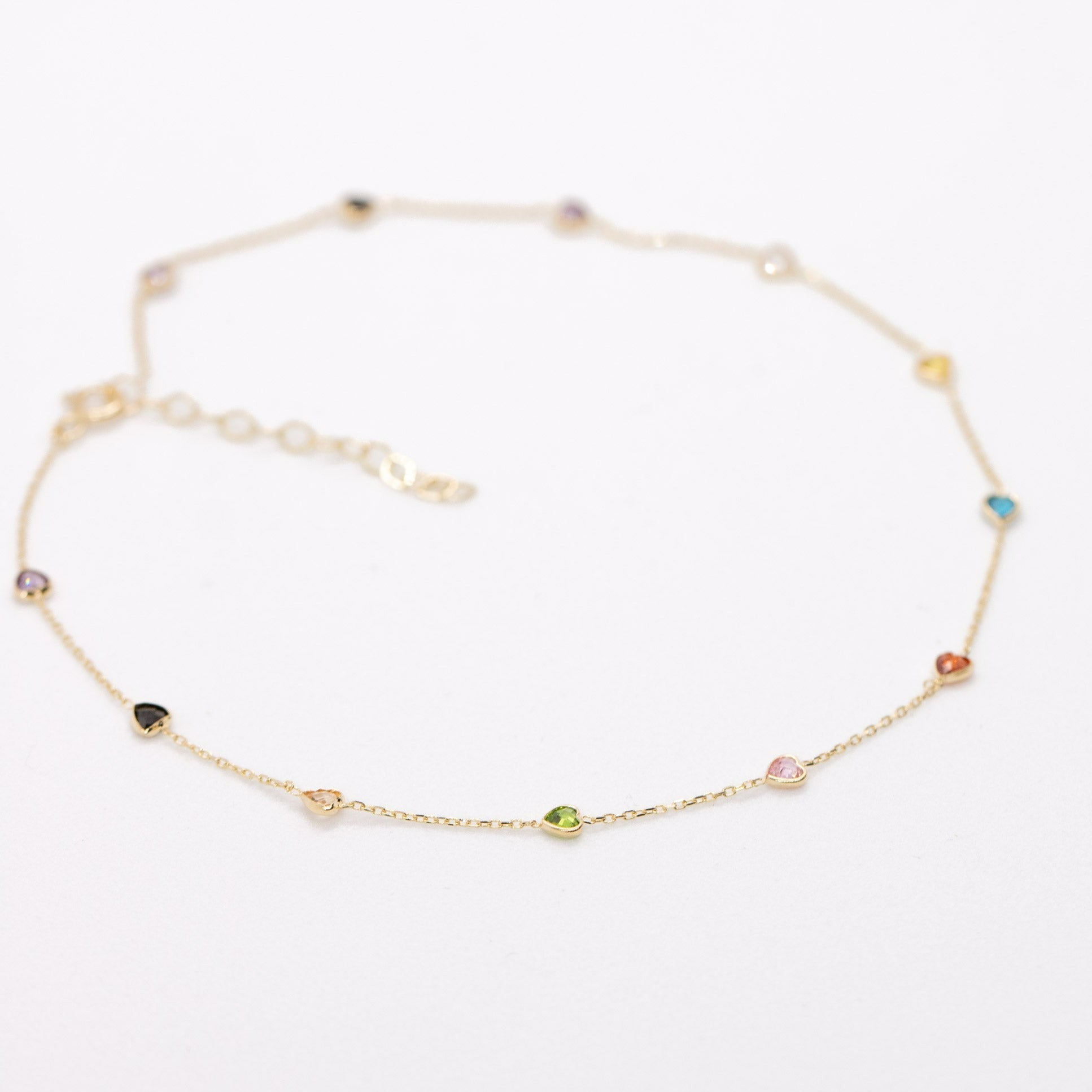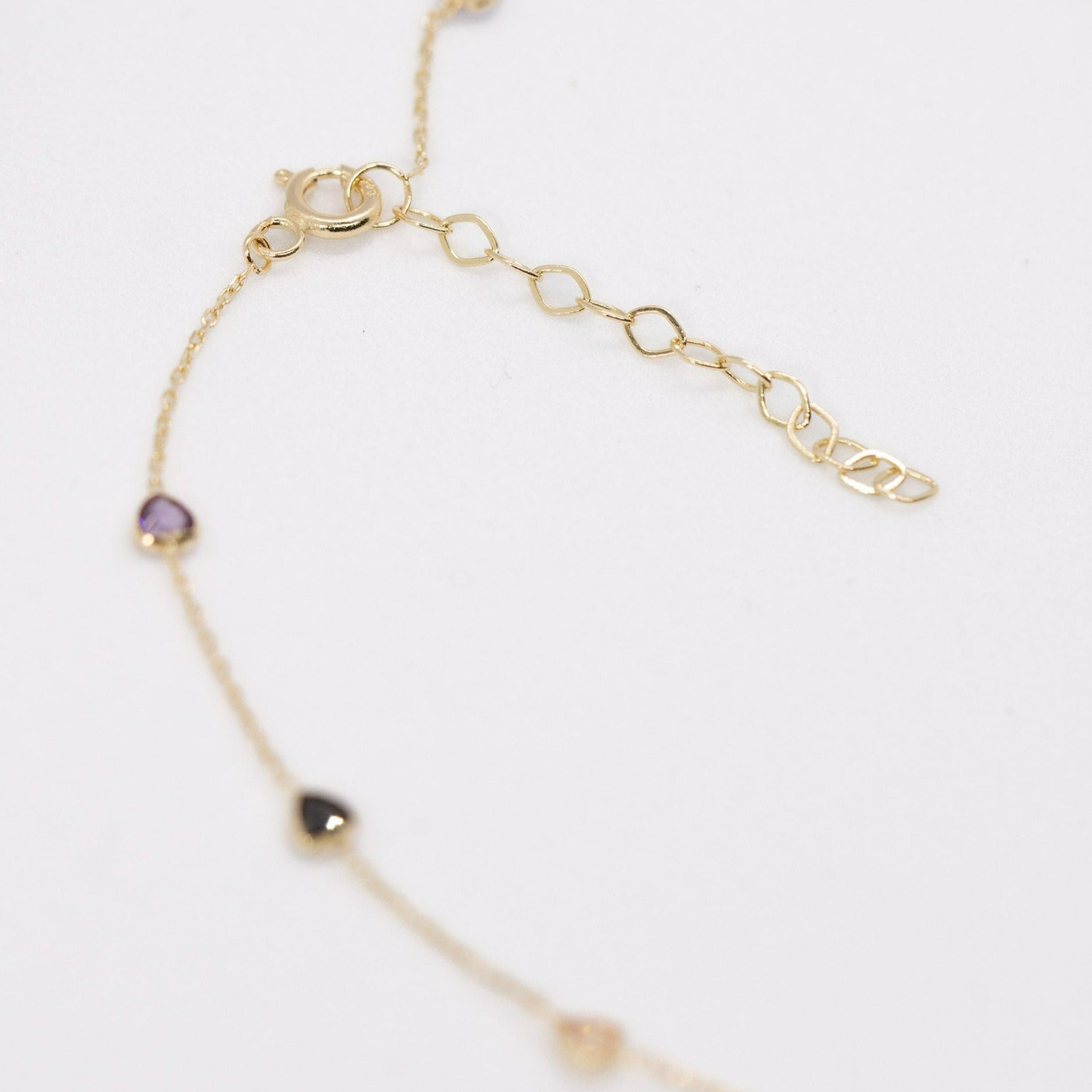 The fine yellow gold chain offers a timeless shine that won’t tarnish, while the colorful hearts bring a fun, feminine touch to any outfit. Perfect for wearing solo or layering with other anklets for a trendy, personalized style.