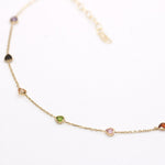 14K Solid Yellow Gold Multi Color Heart CZ Anklet