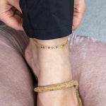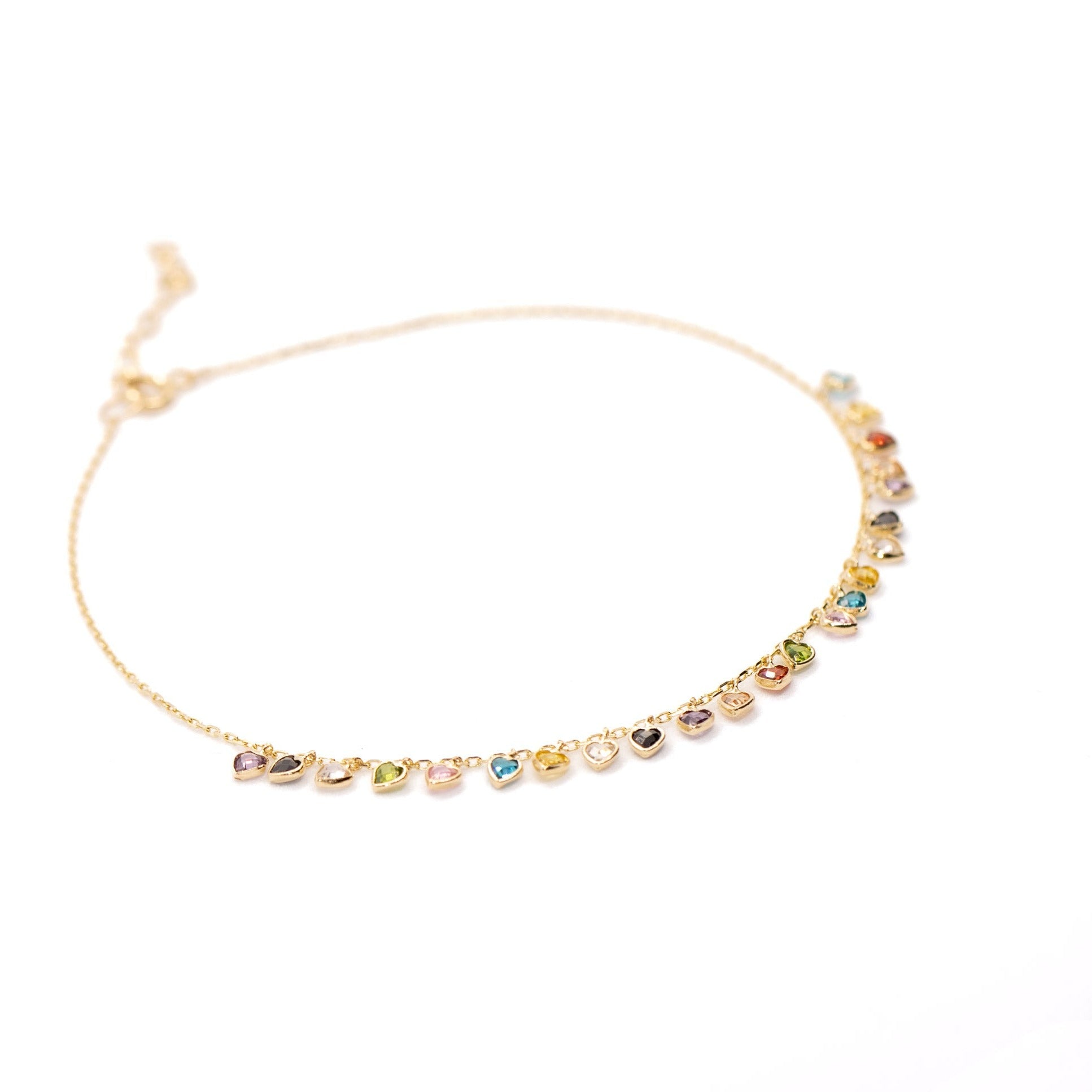 14K Solid Yellow Gold Multi Color Heart CZ Charms Anklet