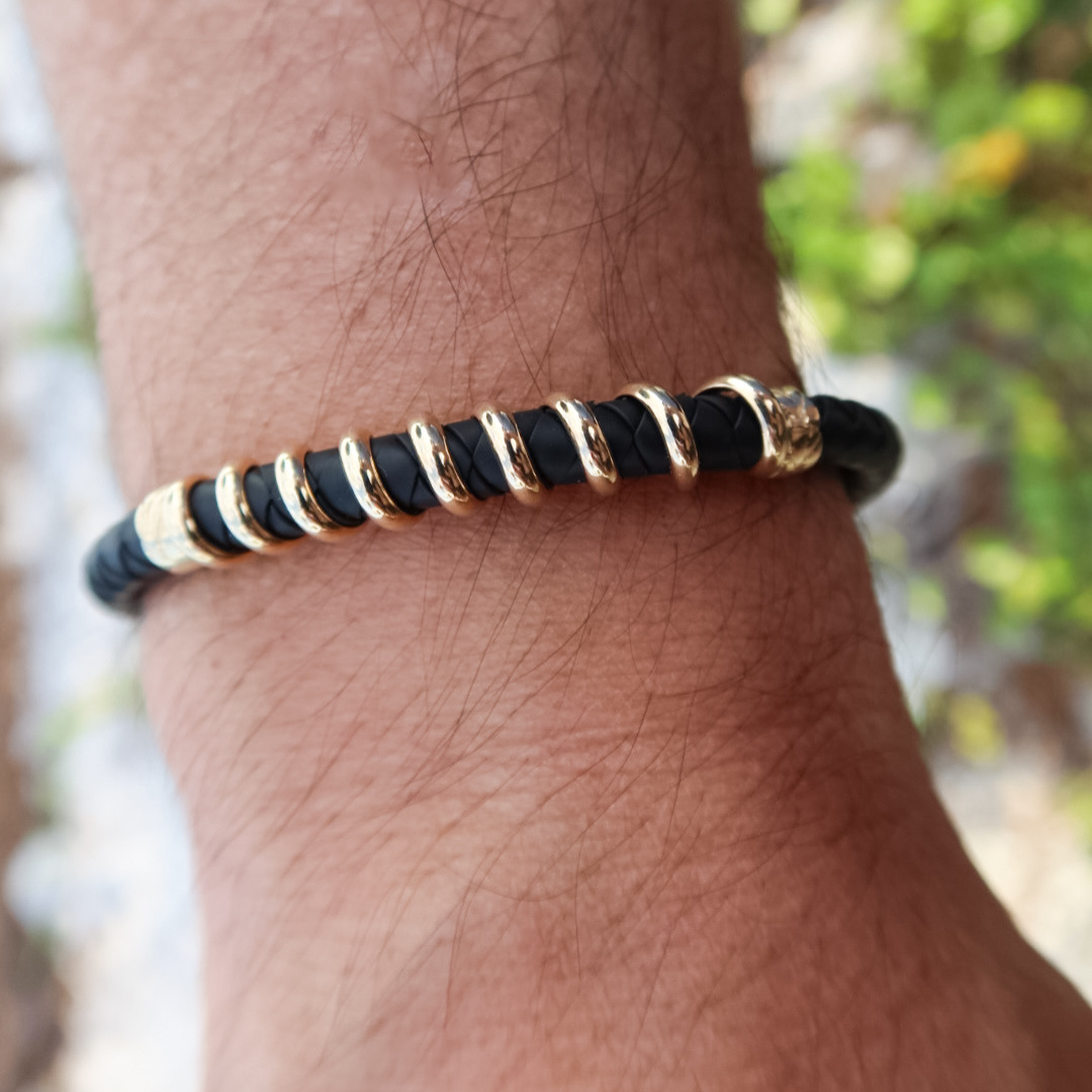 Combine style and durability with this 14K Solid Yellow Gold Men’s Rubber Bracelet. Crafted with genuine solid gold accents—not plated or filled—this bracelet features a sleek rubber band for comfort and modern appeal. Perfect for everyday wear or casual occasions, it’s a bold and versatile piece that balances rugged design with refined luxury.
