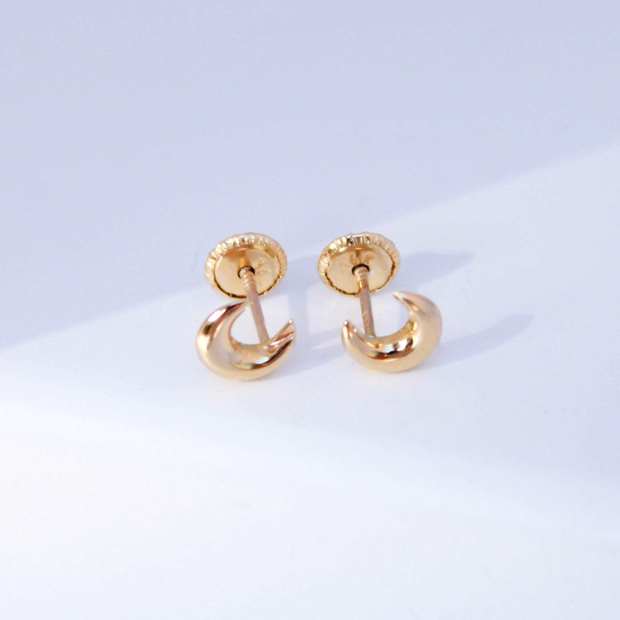 Embrace celestial elegance with these 14K solid yellow gold moon earrings. Designed to be lightweight and versatile, they add a subtle, luminous touch to any outfit. Perfect for everyday wear, stacking with other earrings, or wearing solo as a minimalist statement piece, these moon earrings bring timeless beauty to your jewelry collection.