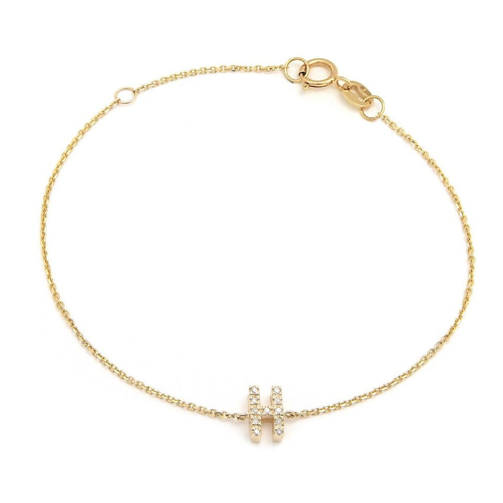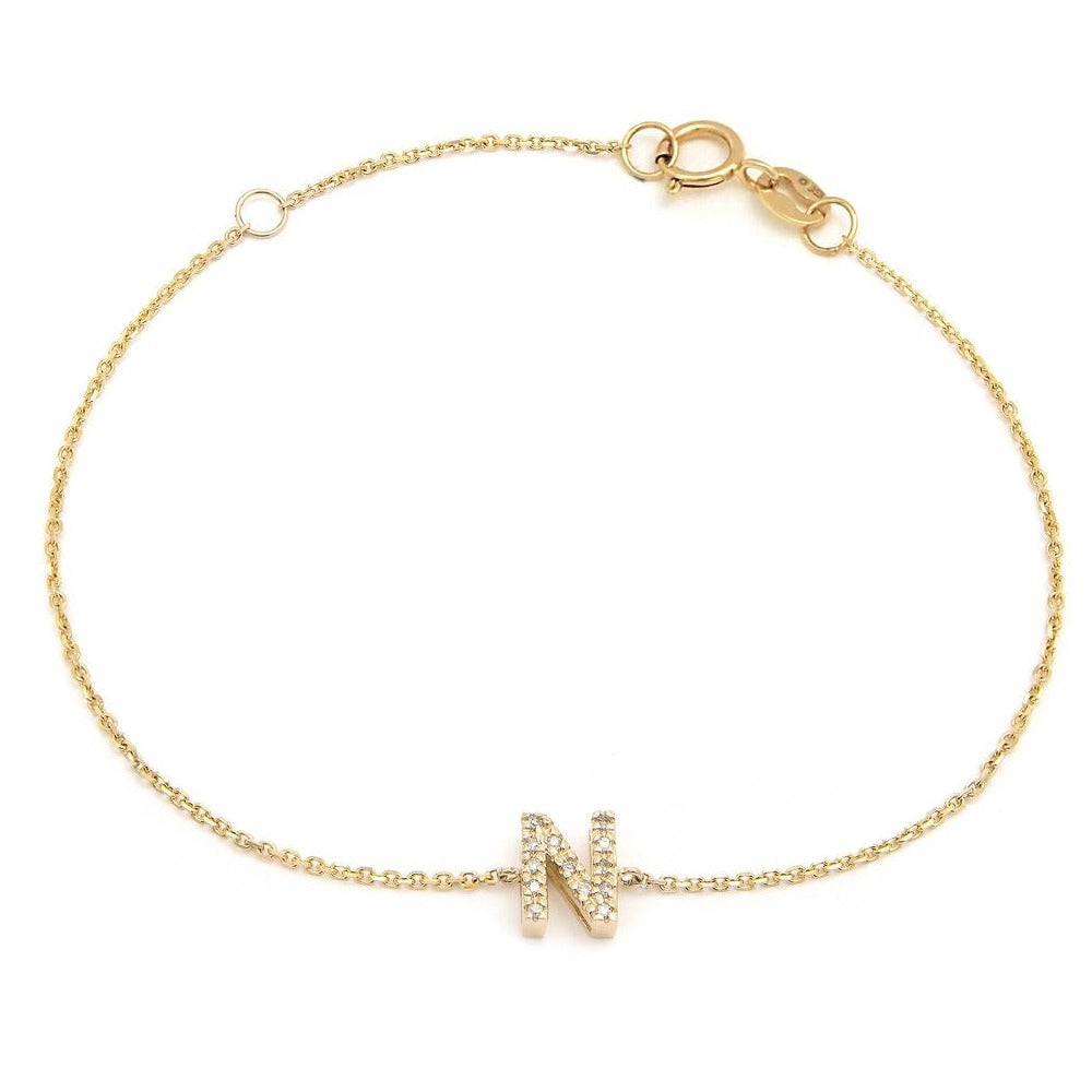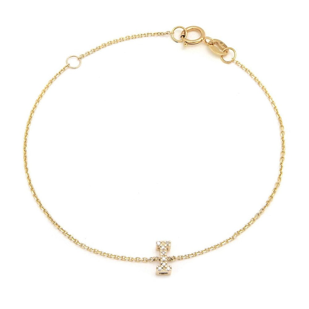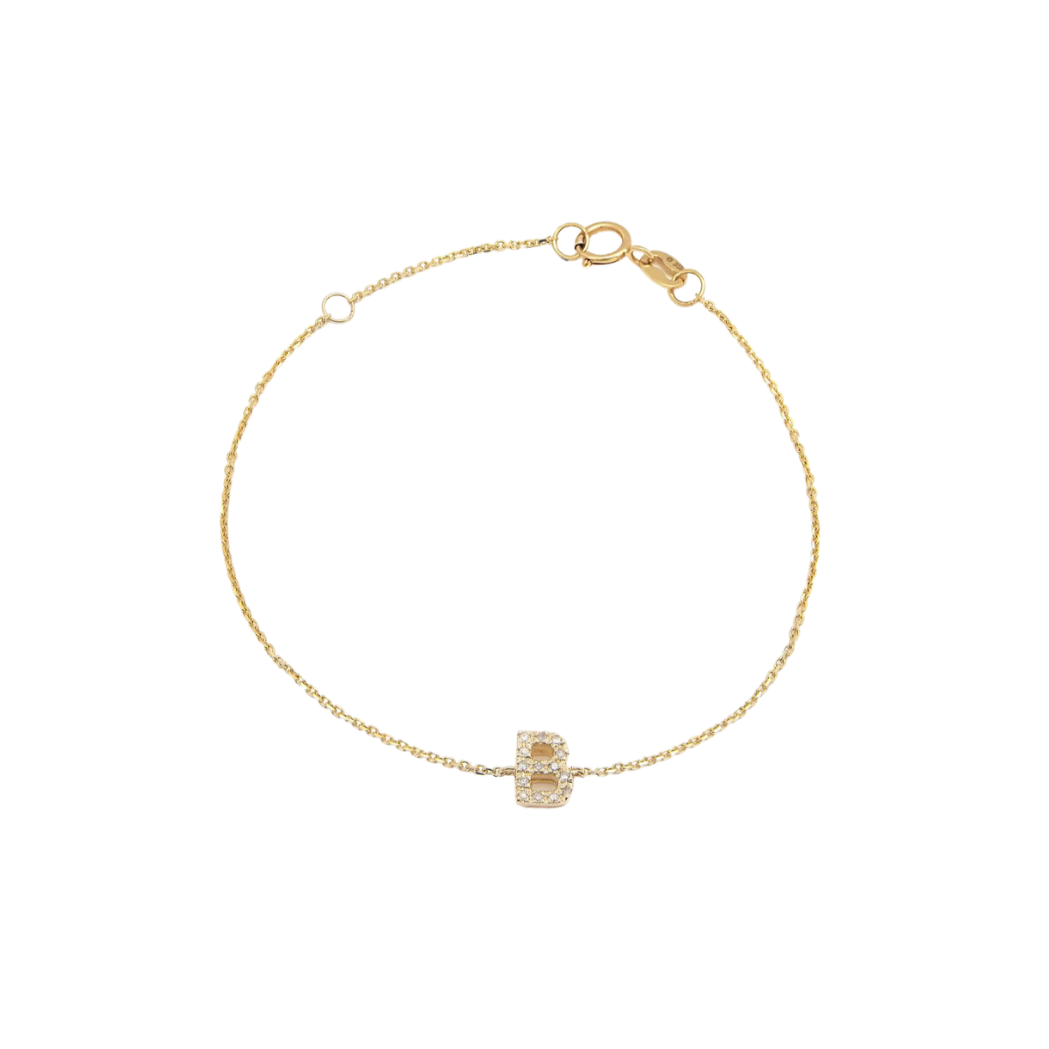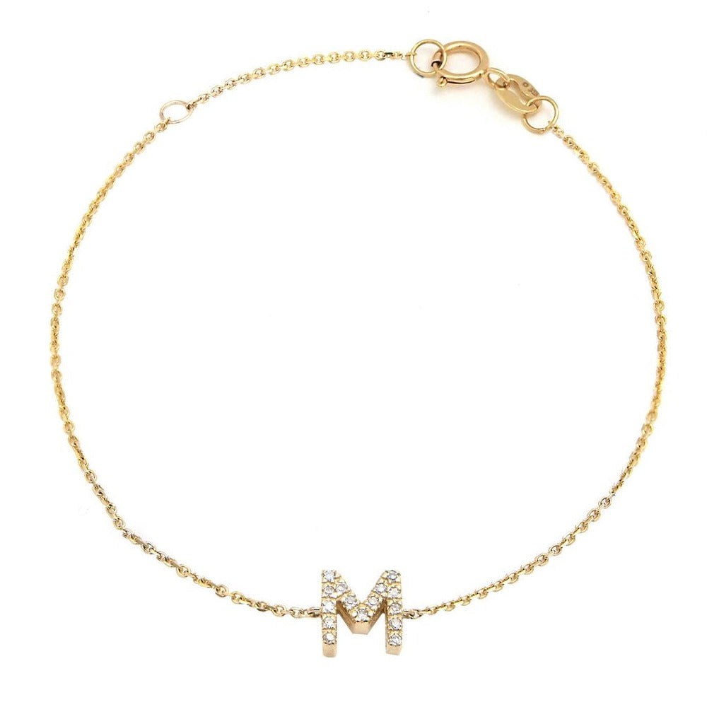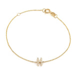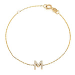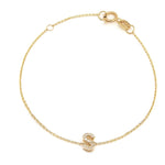 14K Solid Yellow Gold Pave Diamond Initial Bracelet
