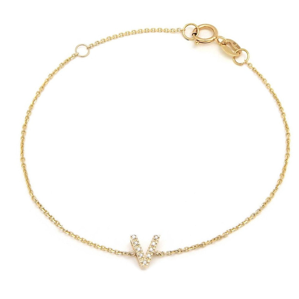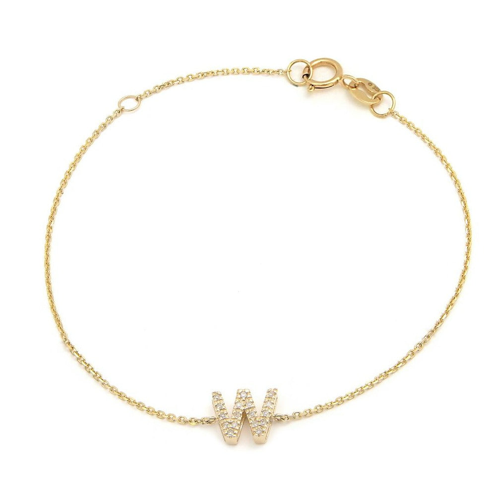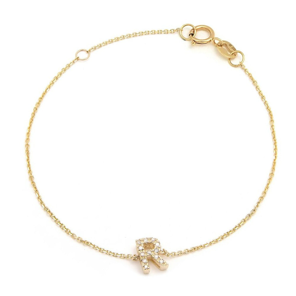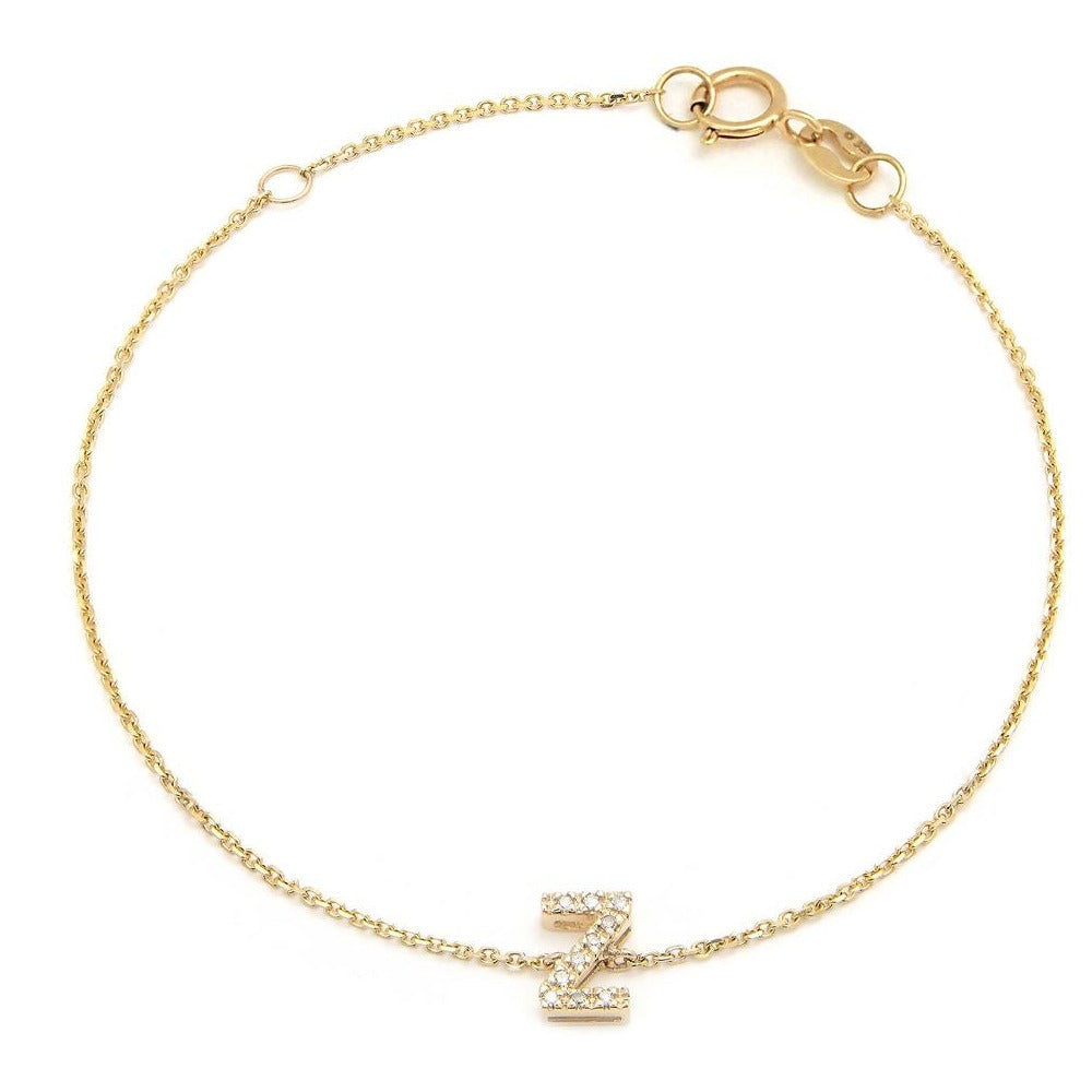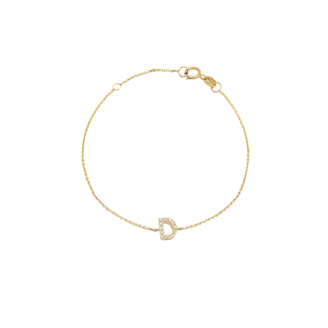 14K Solid Yellow Gold Pave Diamond Initial Bracelet