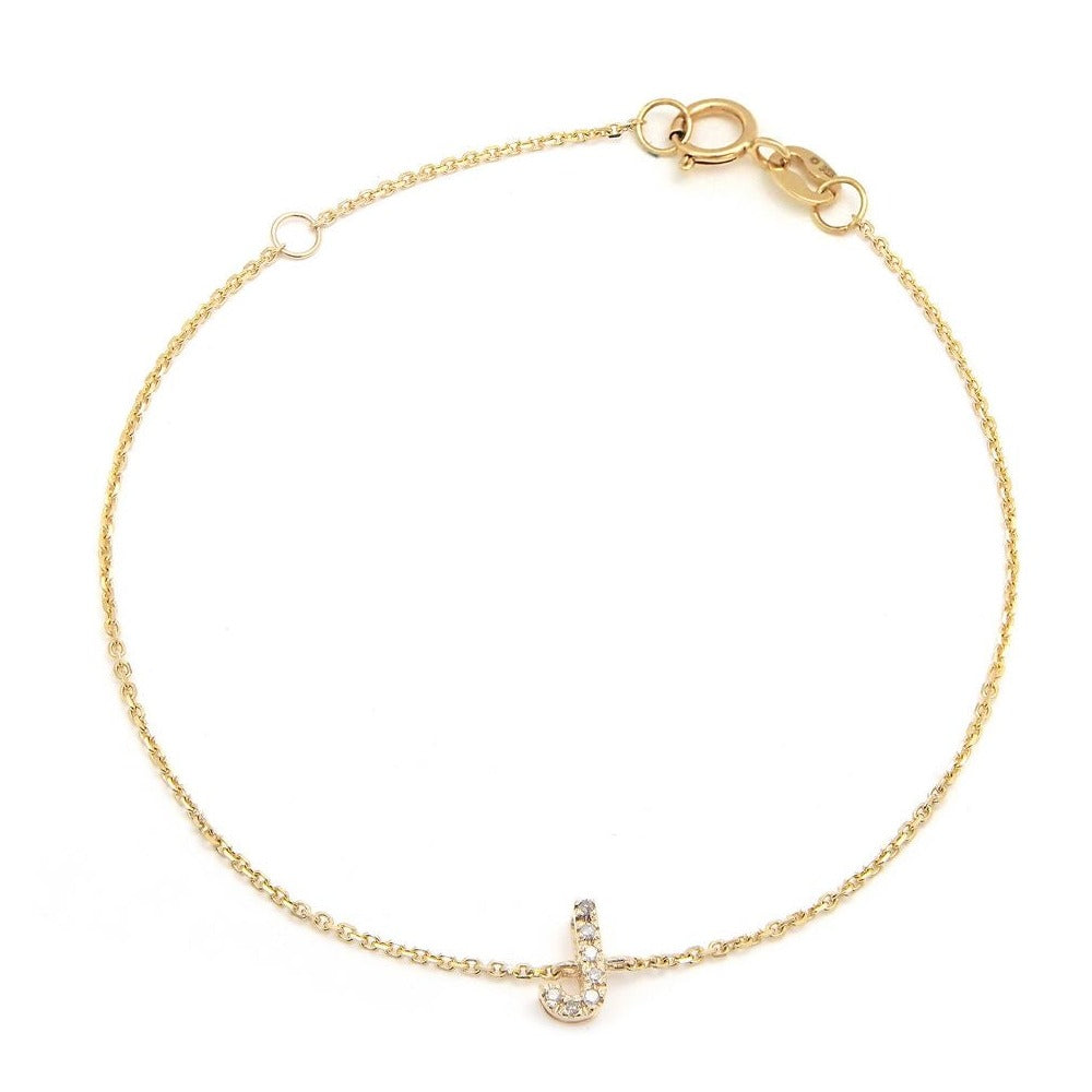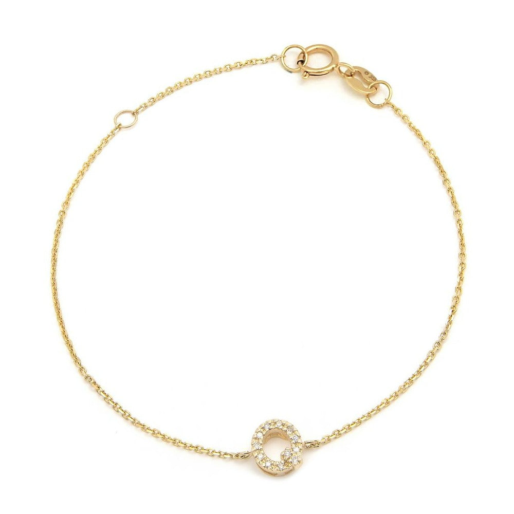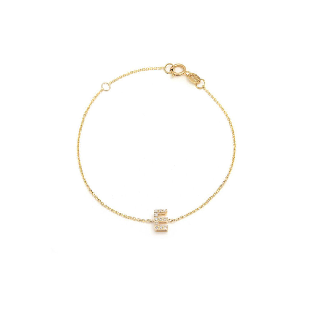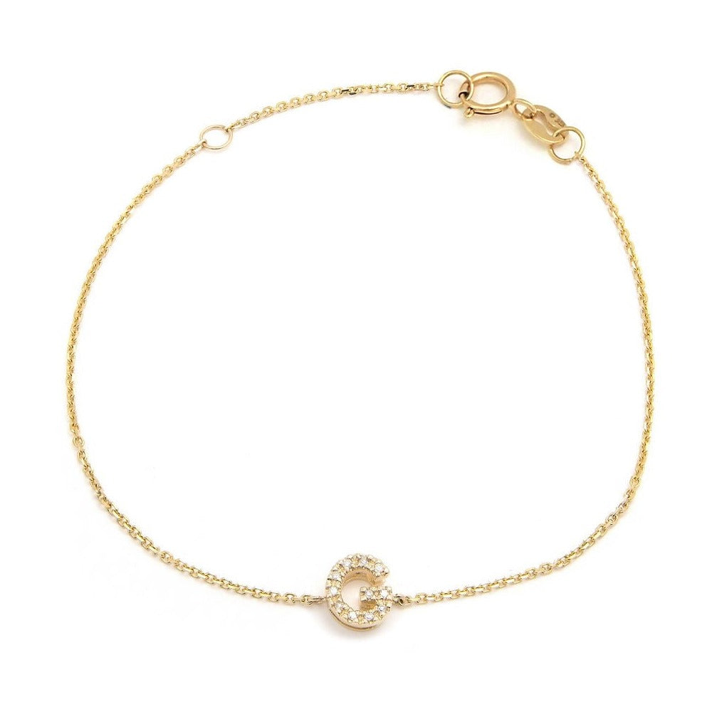 14K Solid Yellow Gold Pave Diamond Initial Bracelet