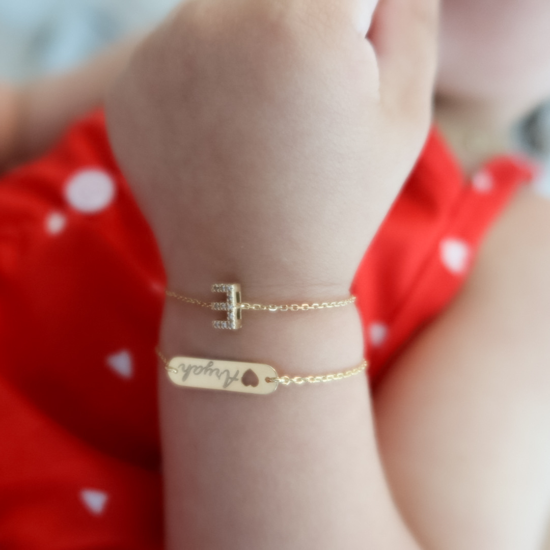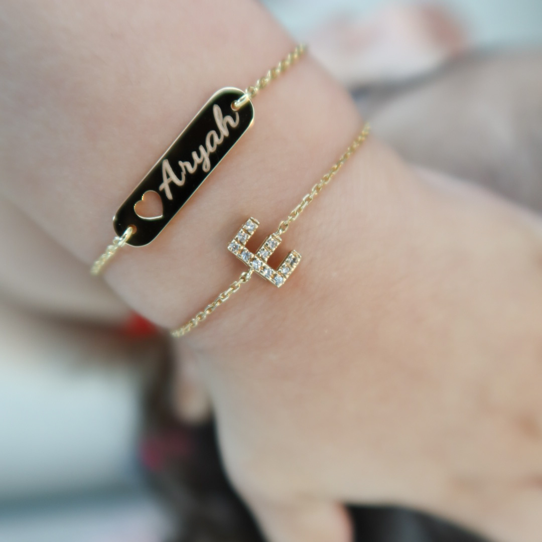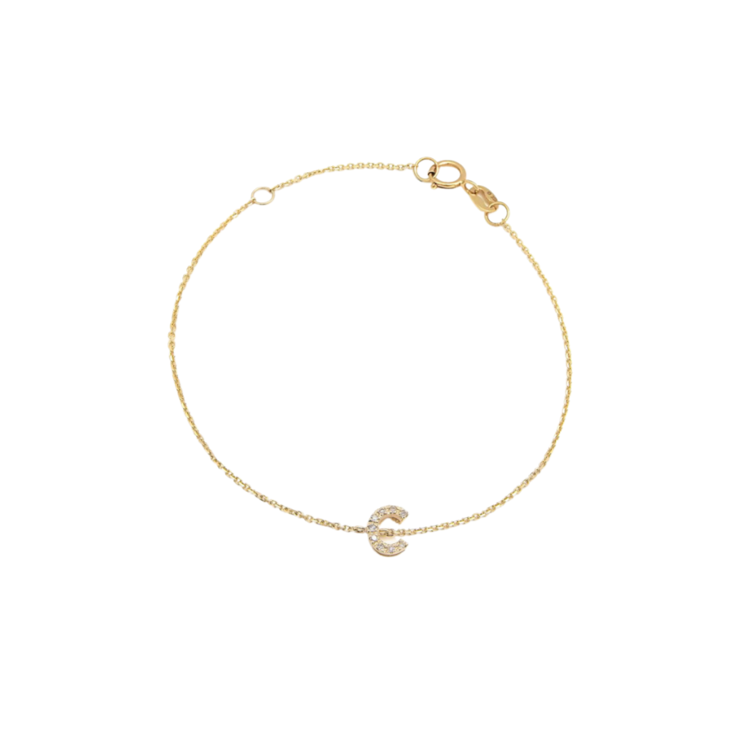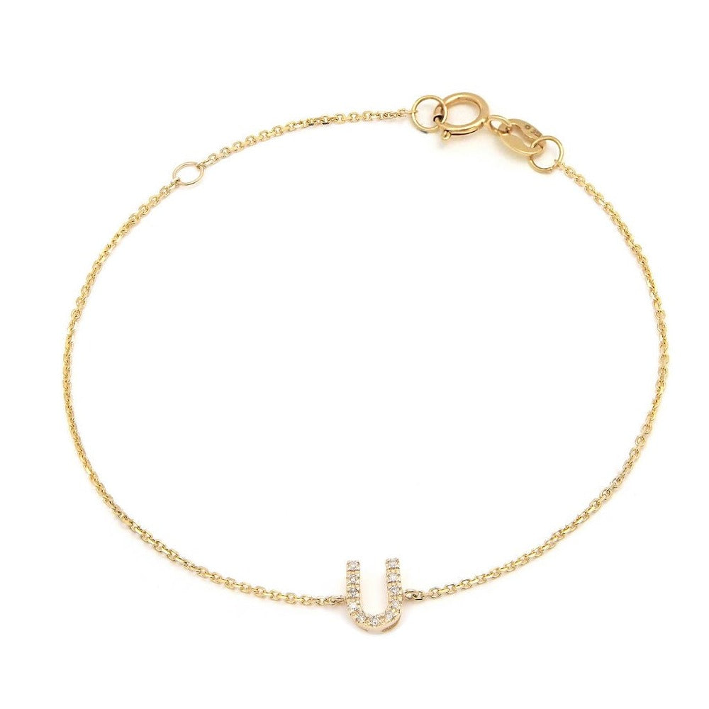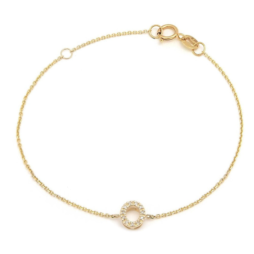 14K Solid Yellow Gold Pave Diamond Initial Bracelet