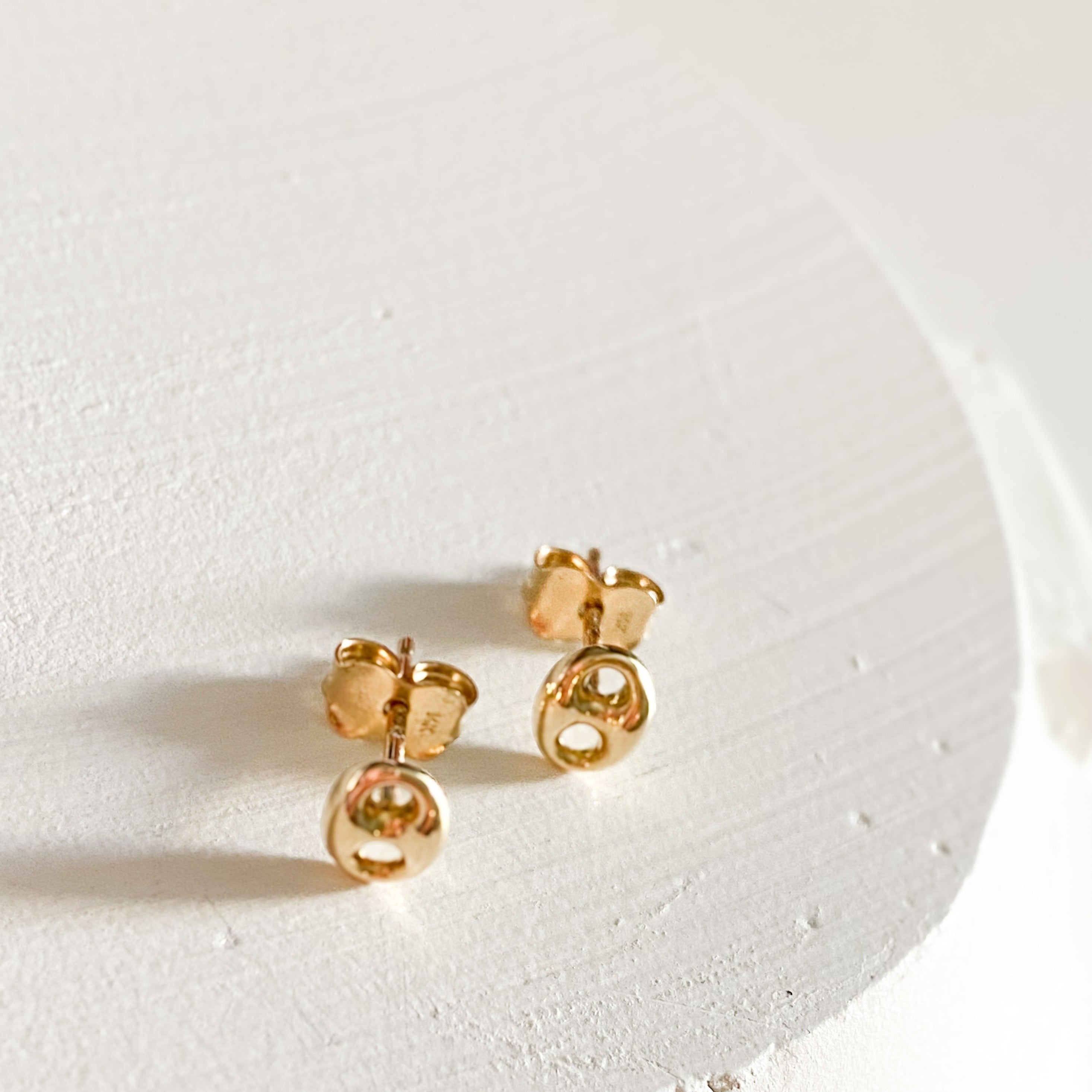 14K Solid Yellow Gold Puff Mariner Link Earrings