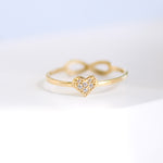 14K Solid Yellow Gold CZ Heart & Infinity Symbol Ring