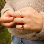 This beautiful ring has an infinity symbol in one side and a heart with cubic zirconias in the other side that symbolizes true love forever. It’s reversible and very delicate. It’ll  make every look more sophisticated!