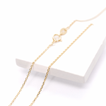 Sleek, modern, and versatile, this 14K solid yellow gold semi-square rolo chain necklace with spring lock features slightly angular links that catch the light with subtle brilliance. The secure spring lock clasp ensures comfortable, everyday wear. Perfect for layering with pendants or wearing alone, it’s a timeless addition to any jewelry collection.
