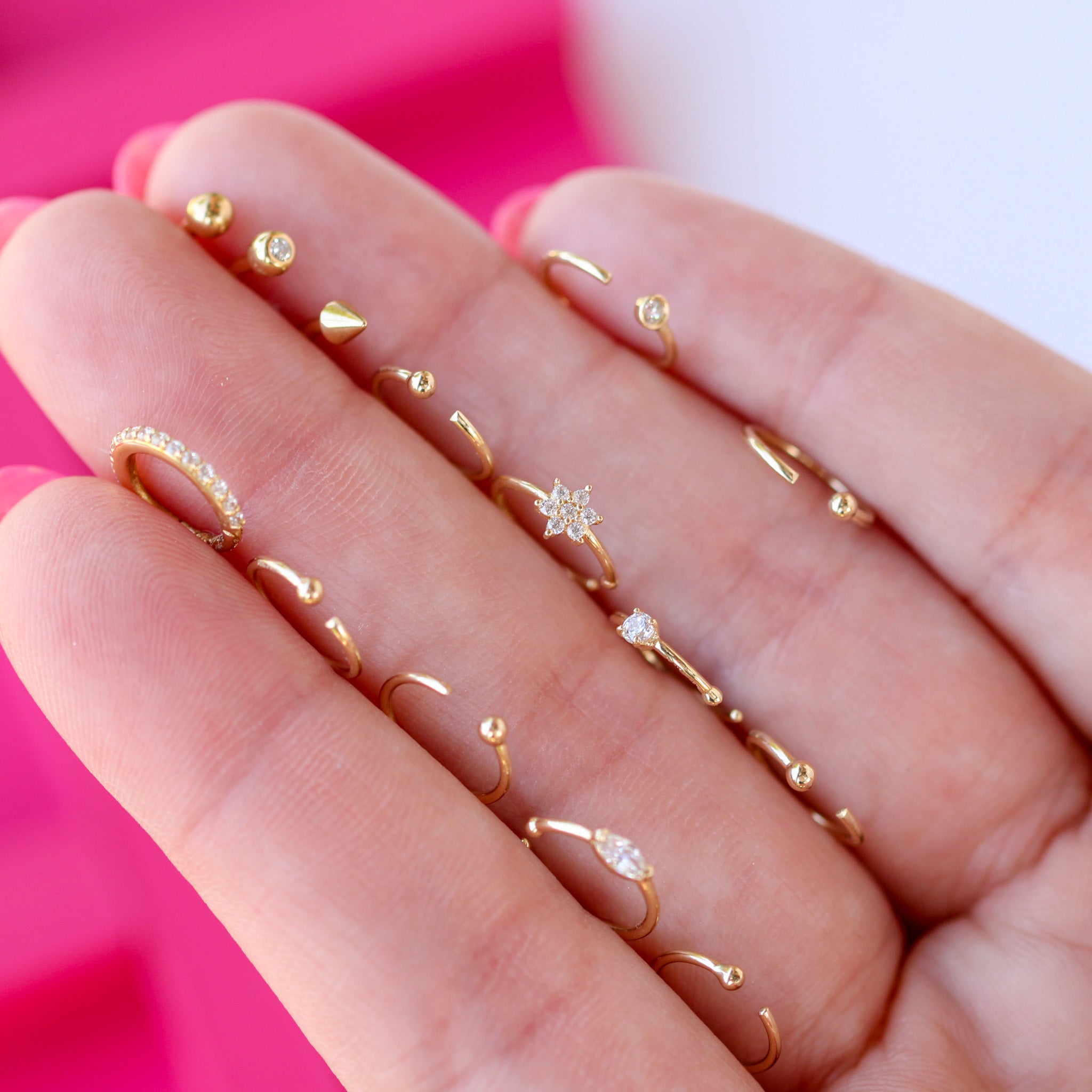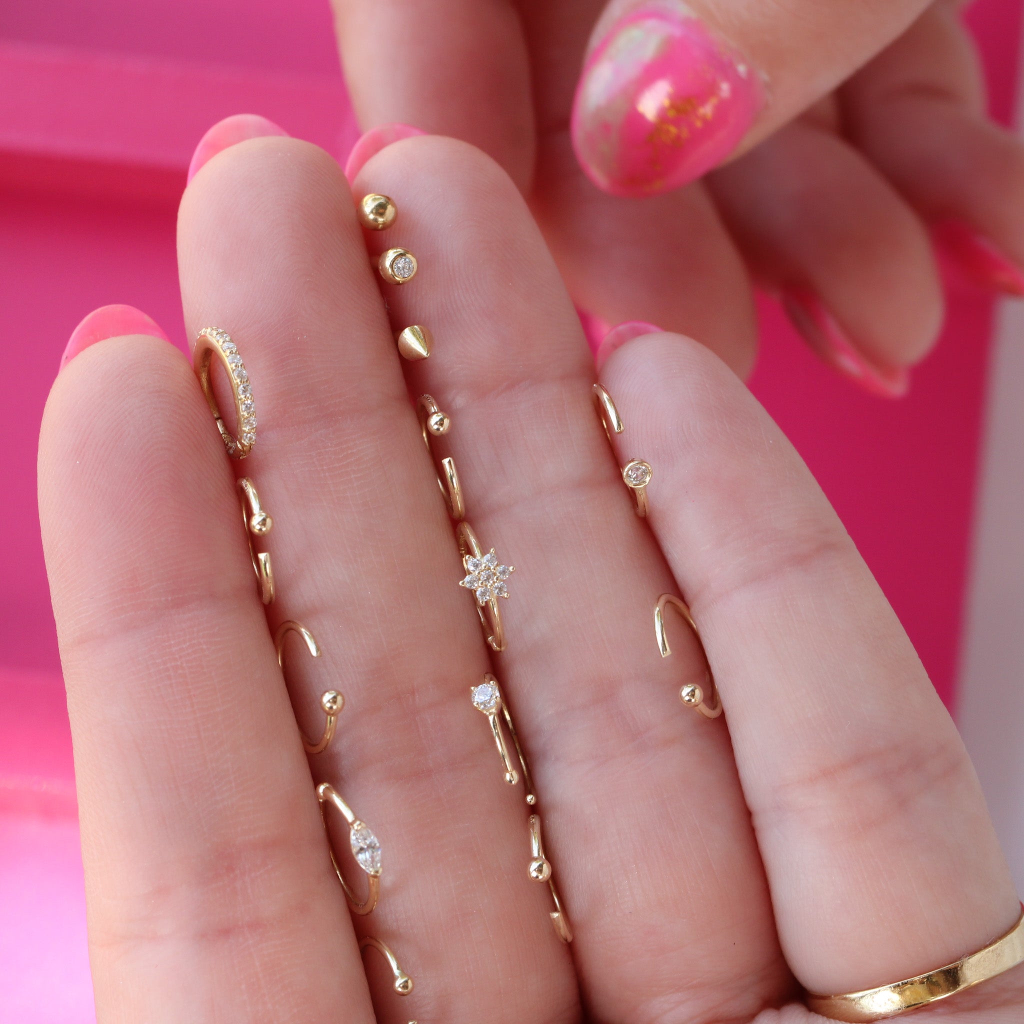 Make a bold statement with 14K Solid Yellow Gold Spikes for Body Piercings. Crafted from genuine 14K yellow gold, these sleek, polished spikes are perfect as replacement ends for barbells, labrets, or other threaded jewelry. Their high-shine finish adds an edgy yet elegant touch to any piercing. Hypoallergenic, tarnish-resistant, and durable, these gold spikes are ideal for anyone looking to elevate their body jewelry with a modern, stylish twist.