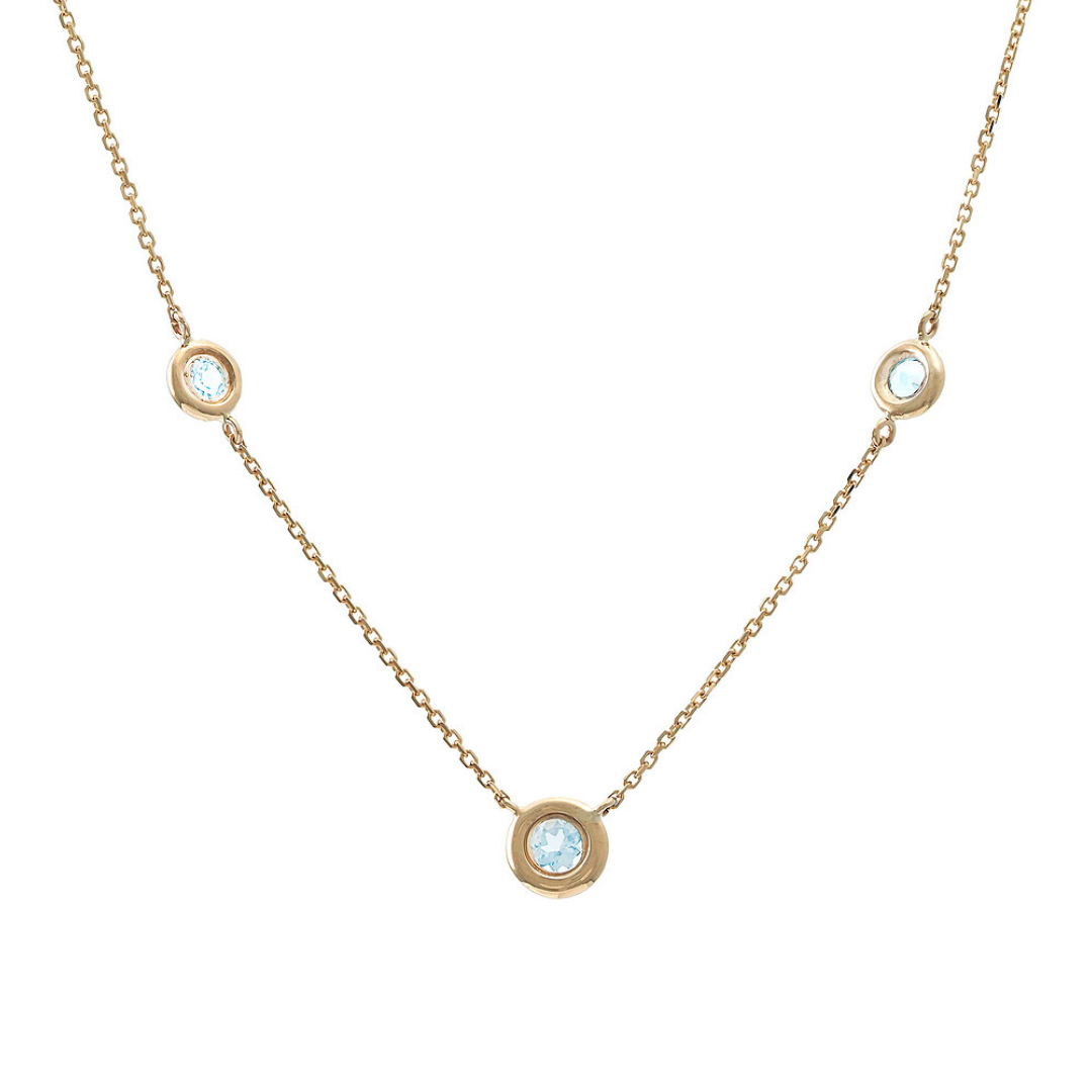 14K Solid Yellow Gold Three Bezel Set Aquamarine Necklace – Elegant Luxury Jewelry