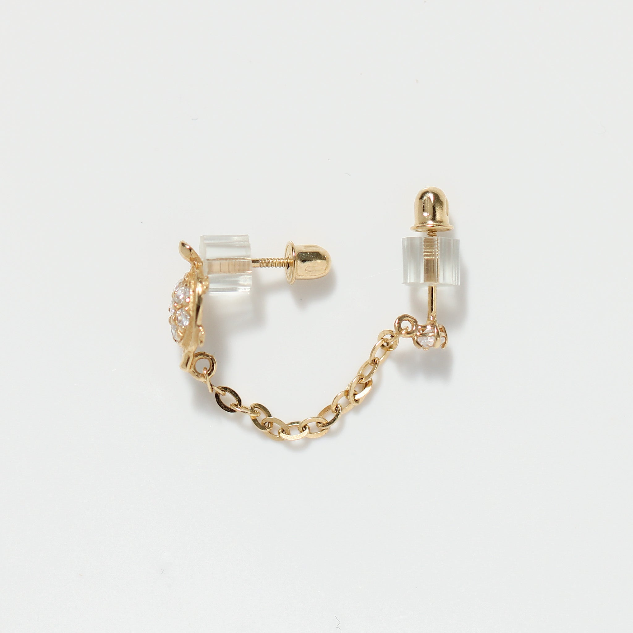 14K Solid Yellow Gold Turtle & Stud Chain Earring