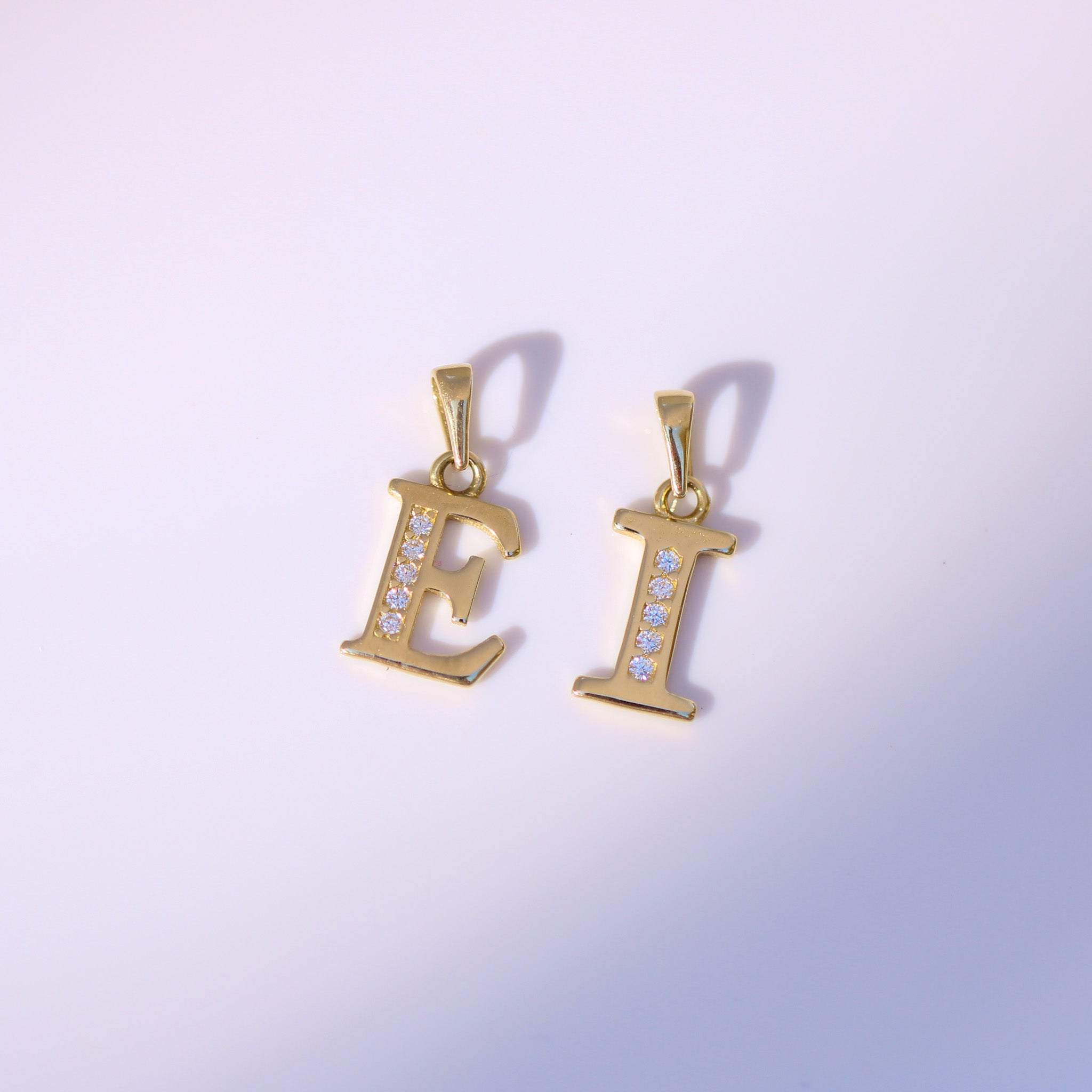 14K Solid Yellow Gold Unisex CZ Initial Pendant