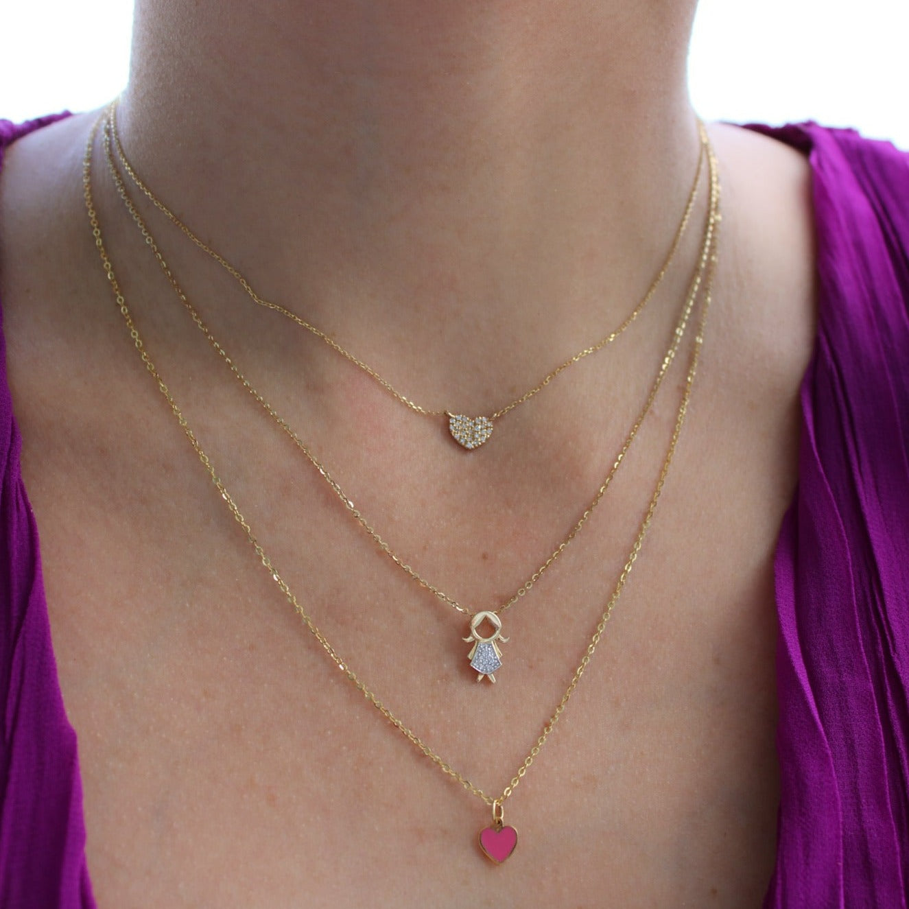 This irresistible pave diamond boy or girl charm pendant is a meaningful present to celebrate the birth of a new child.