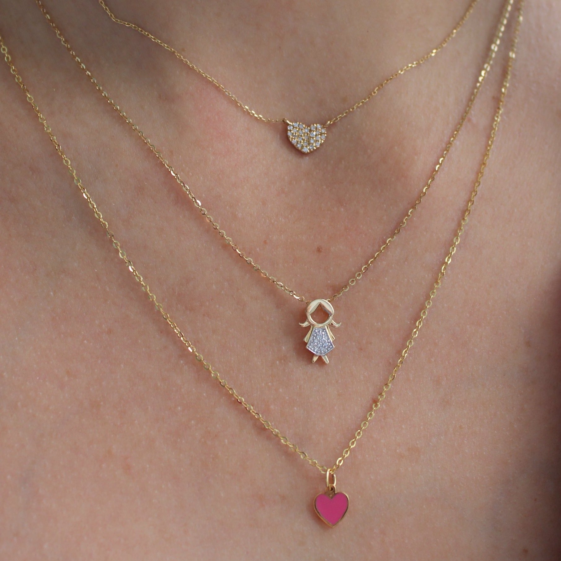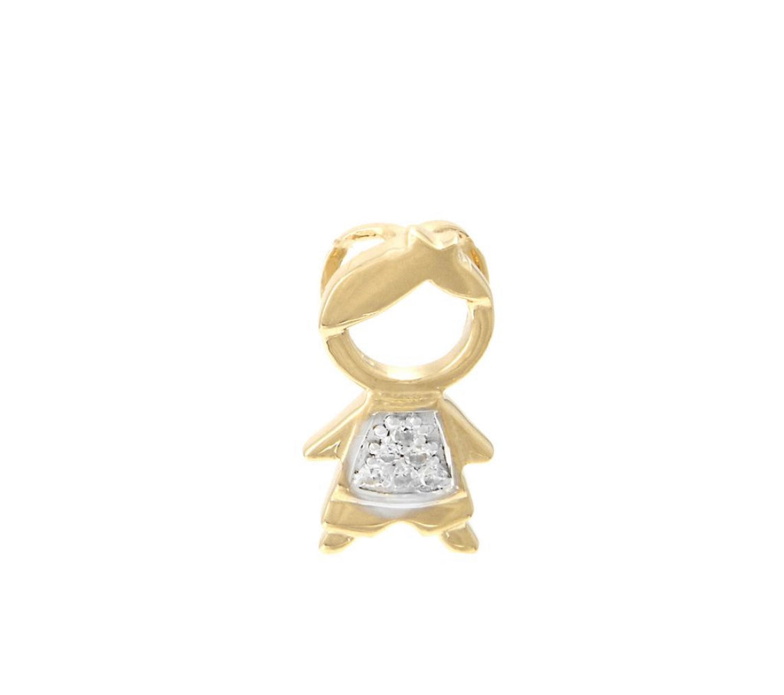 14K Solid Yellow Gold Boy or Girl Pave Diamond Pendant