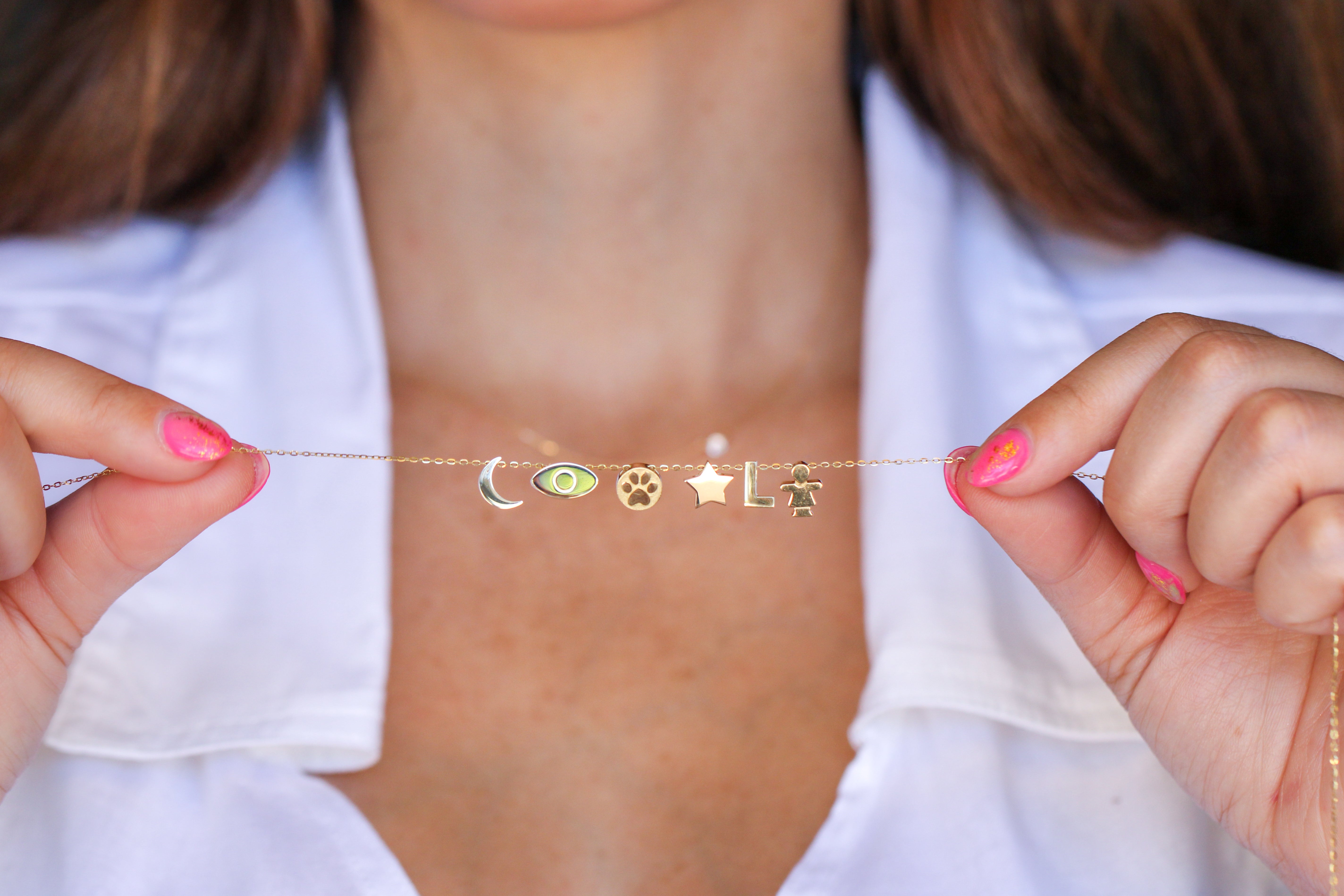 14K Solid Yellow Gold Customizable Initial/Charm Necklace