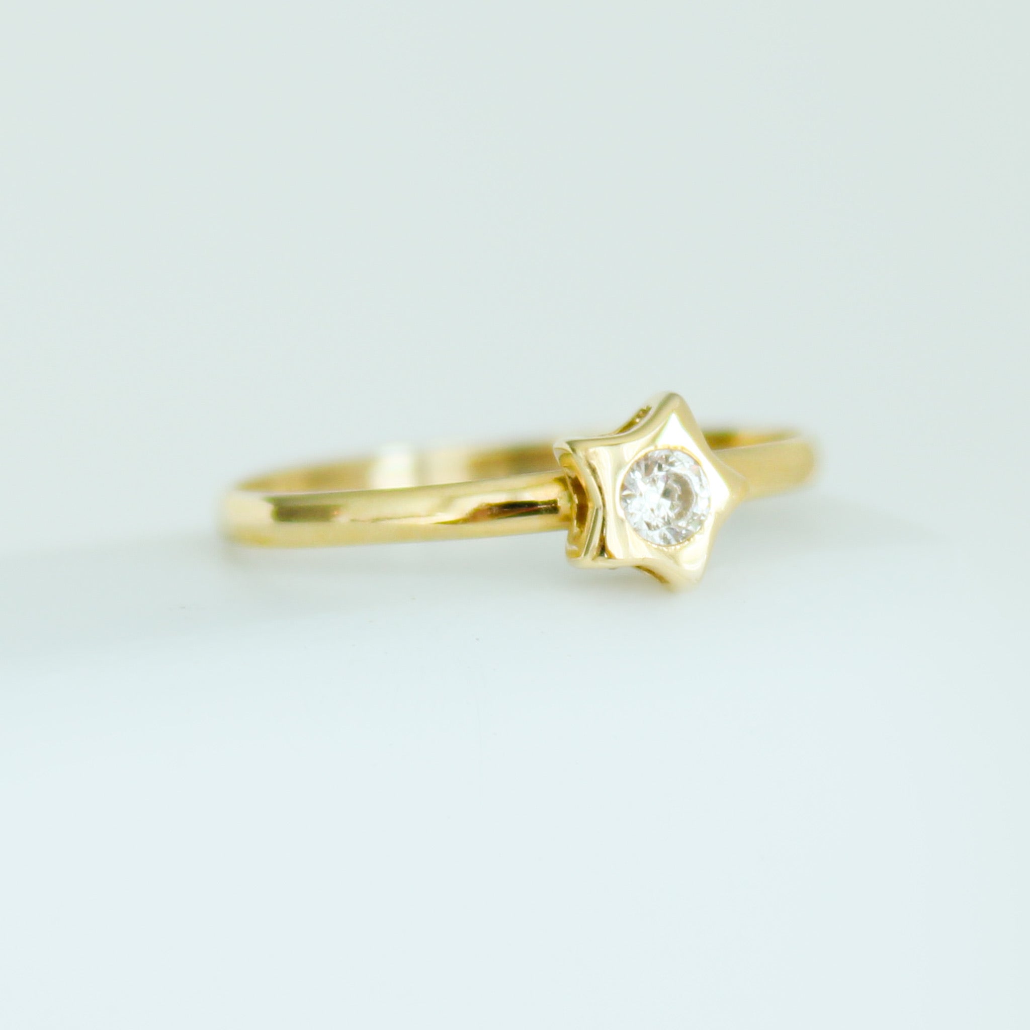 14K Solid Yellow Gold Cubic Zirconia Star Ring