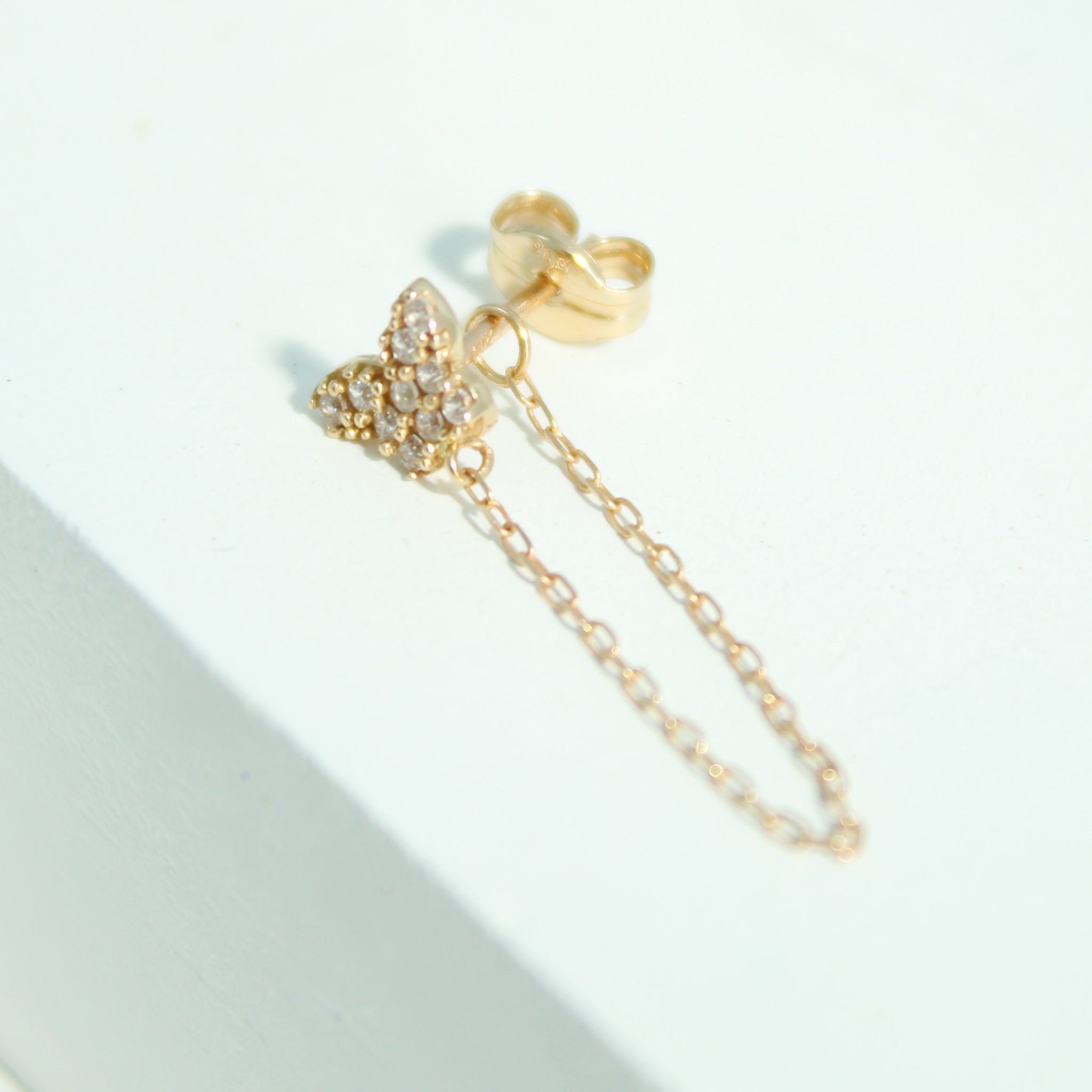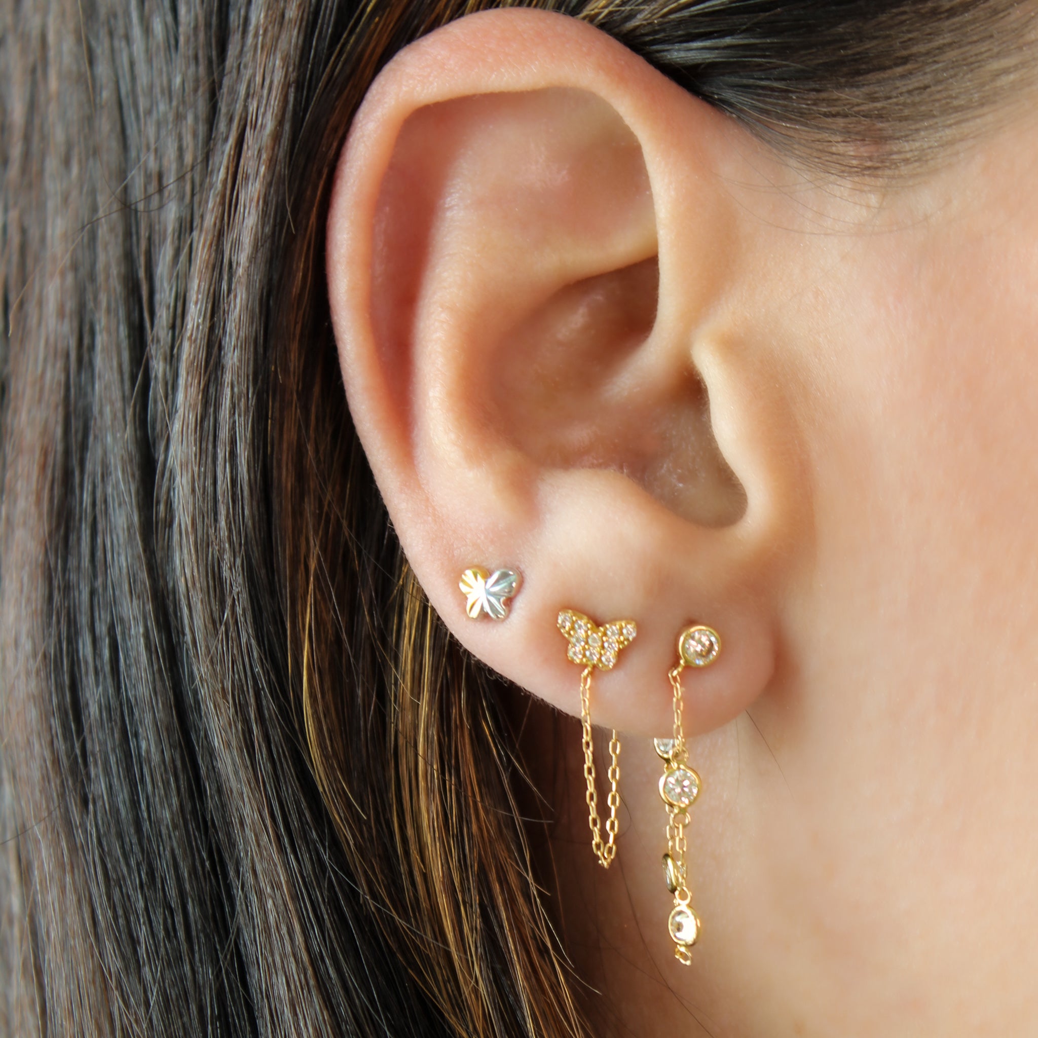 14K Solid Yellow Gold CZ Butterfly Chain Earring