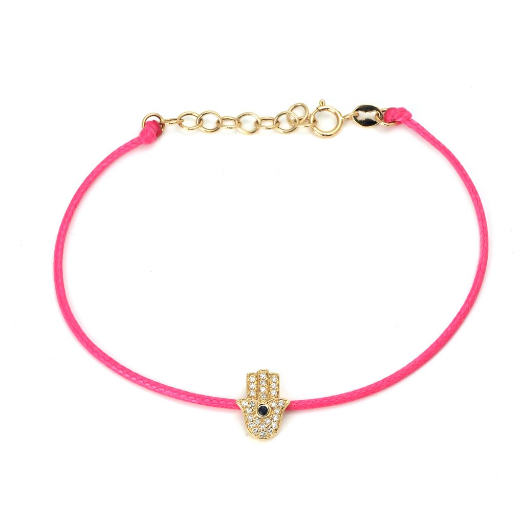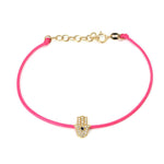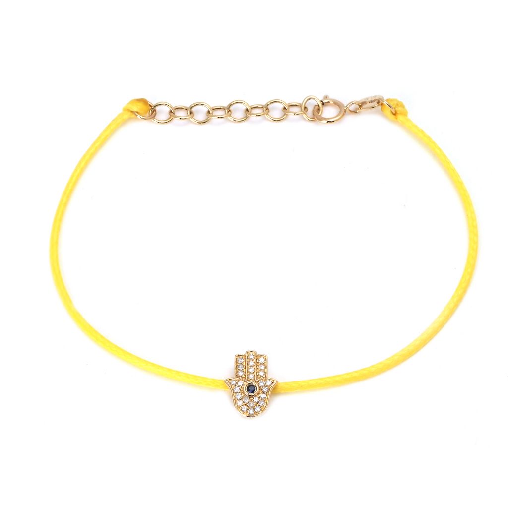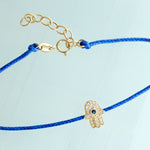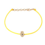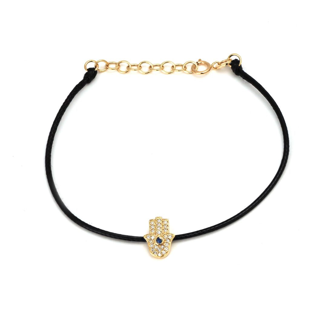 14K Solid Yellow Gold Diamond & Sapphire Hamsa Hand Leather Cord Bracelet