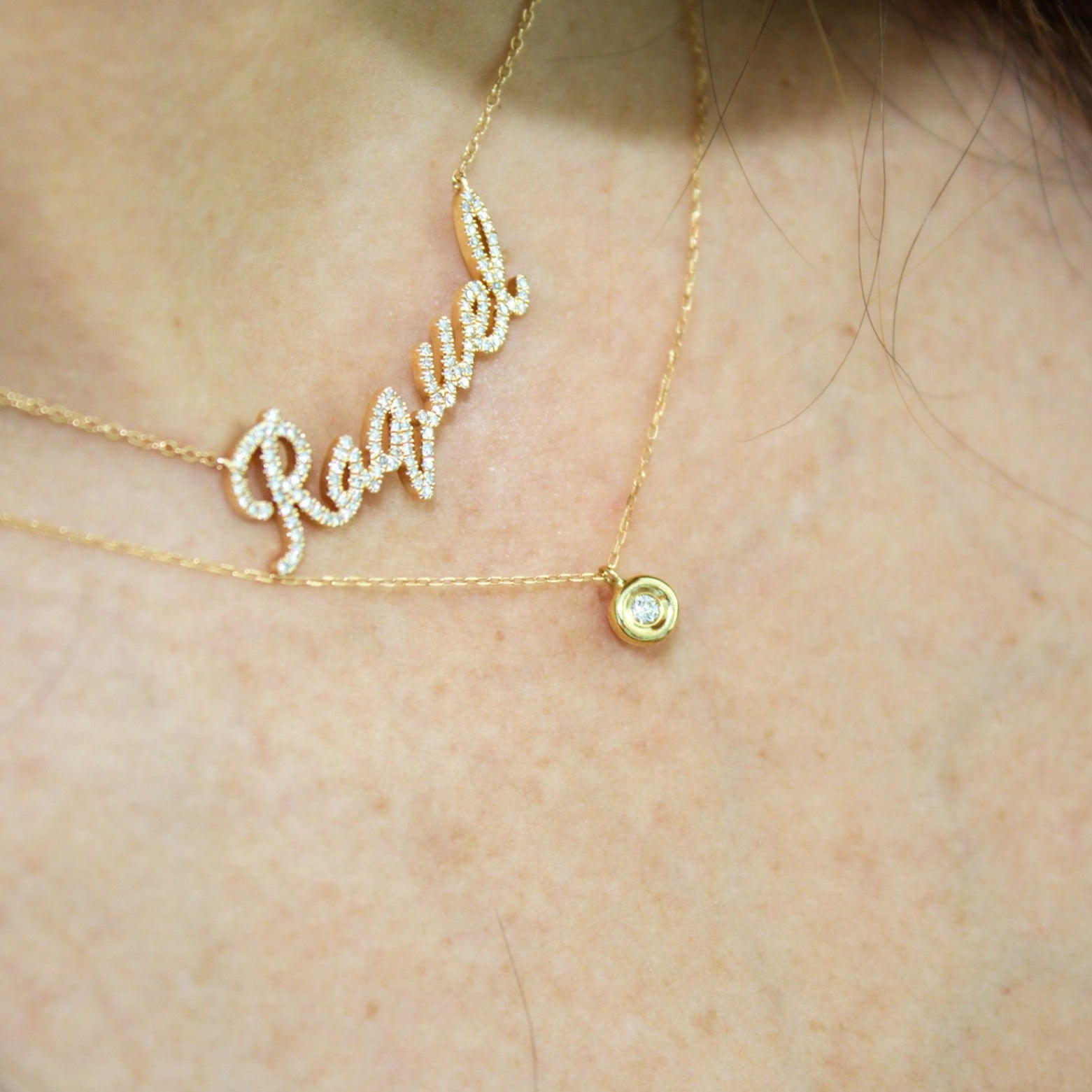 Shine bright with our 14K Solid Yellow Gold Diamond Name Necklace — a luxurious twist on a classic personalized piece. Crafted in solid gold and accented with sparkling diamonds, this necklace adds elegance and brilliance to your everyday style. Personalize it with your name or a loved one’s for a timeless keepsake that’s perfect for gifting or treating yourself.
