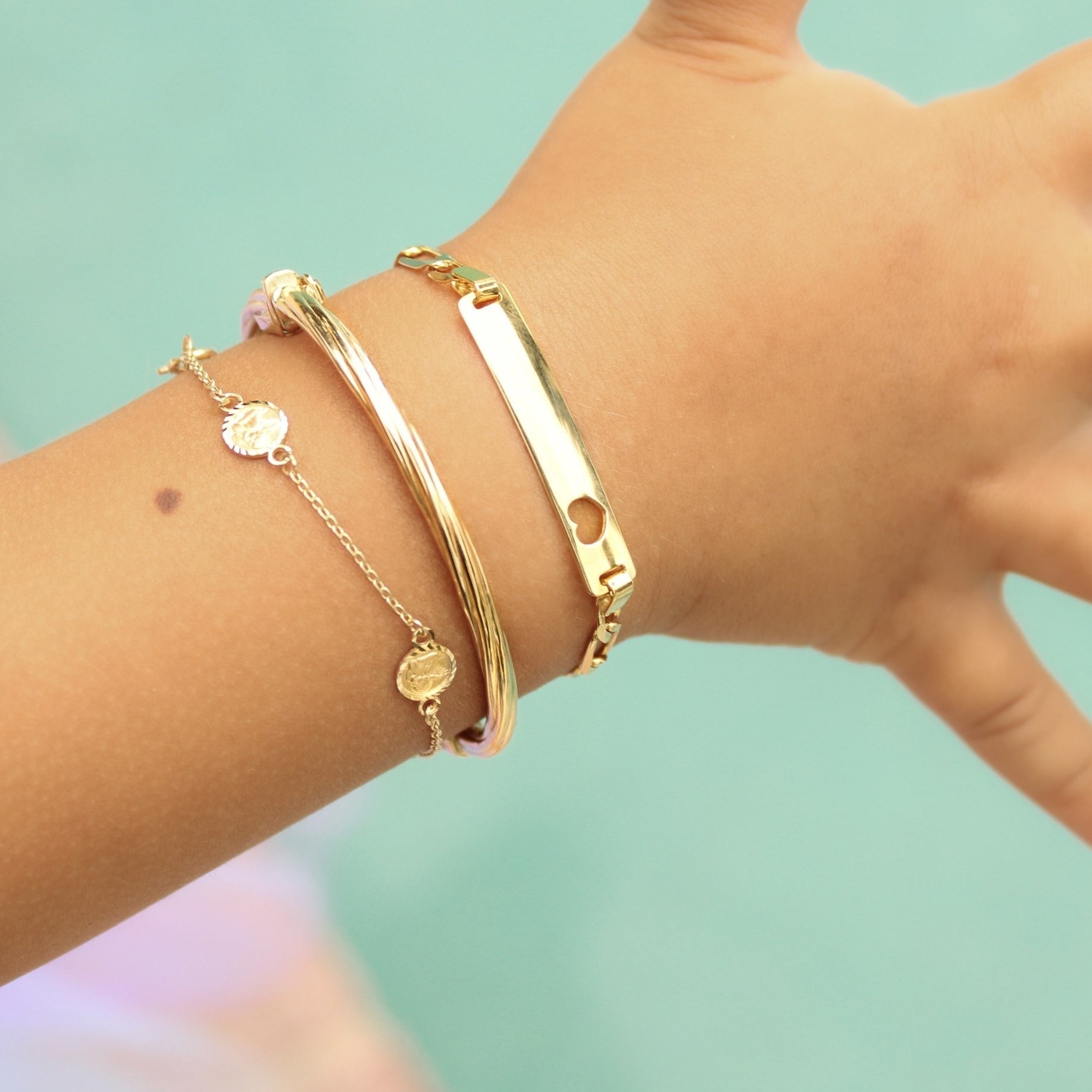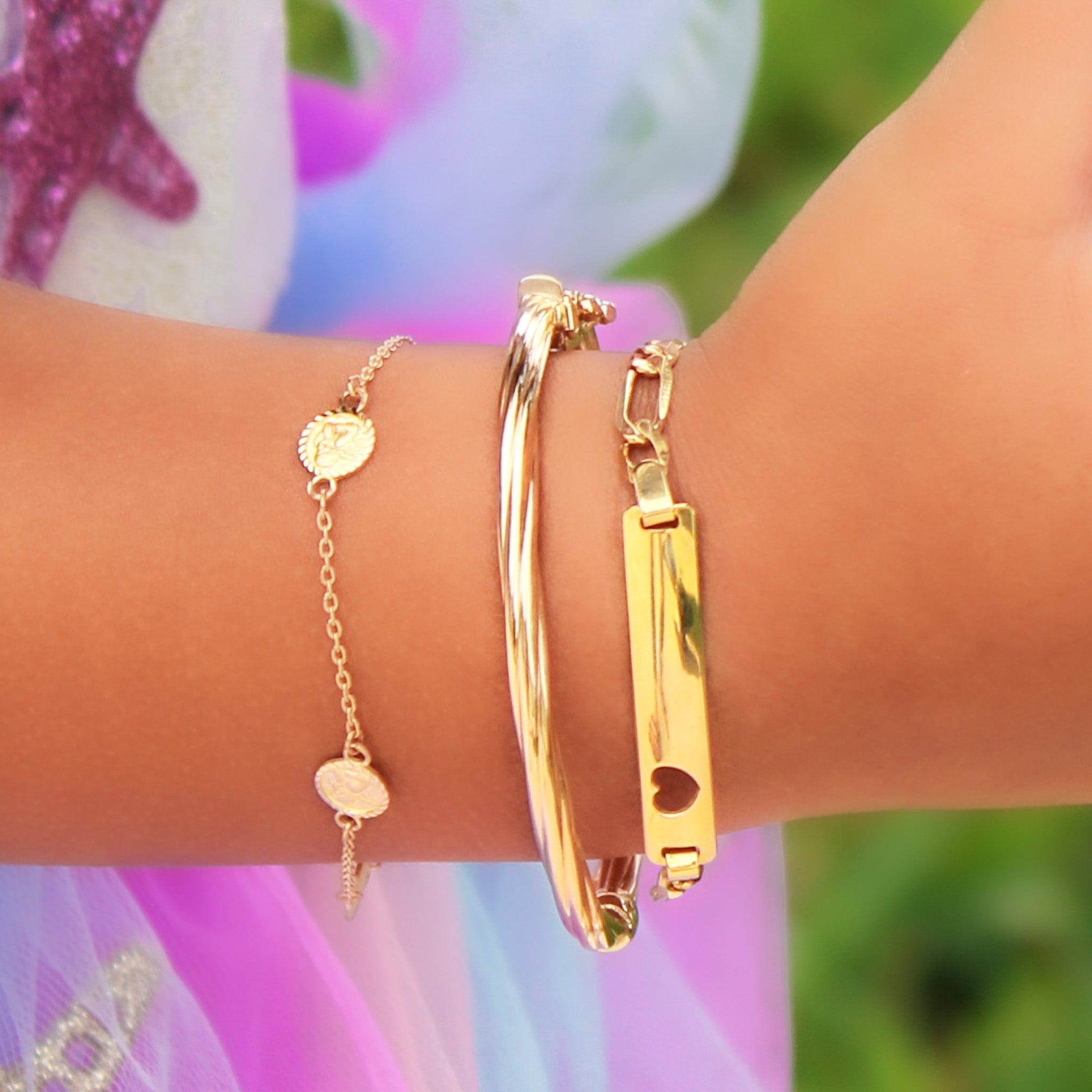 14K Solid Yellow Gold Girl Twisted Bangle