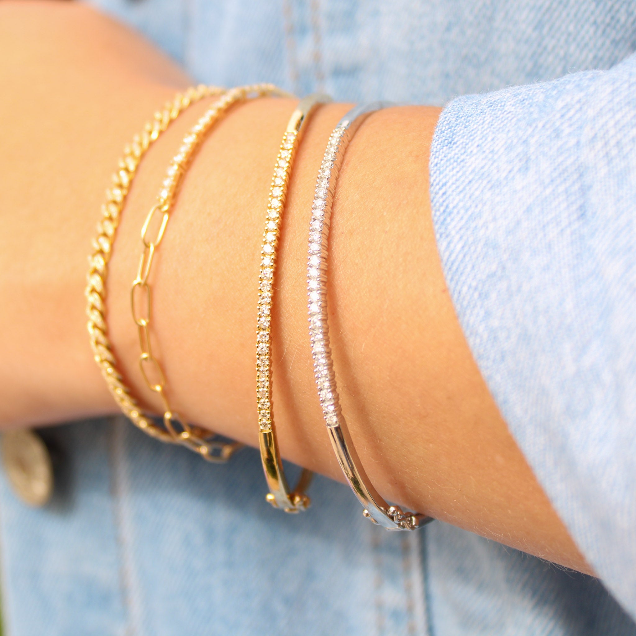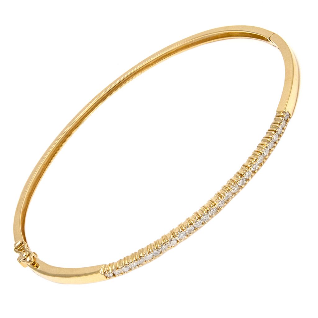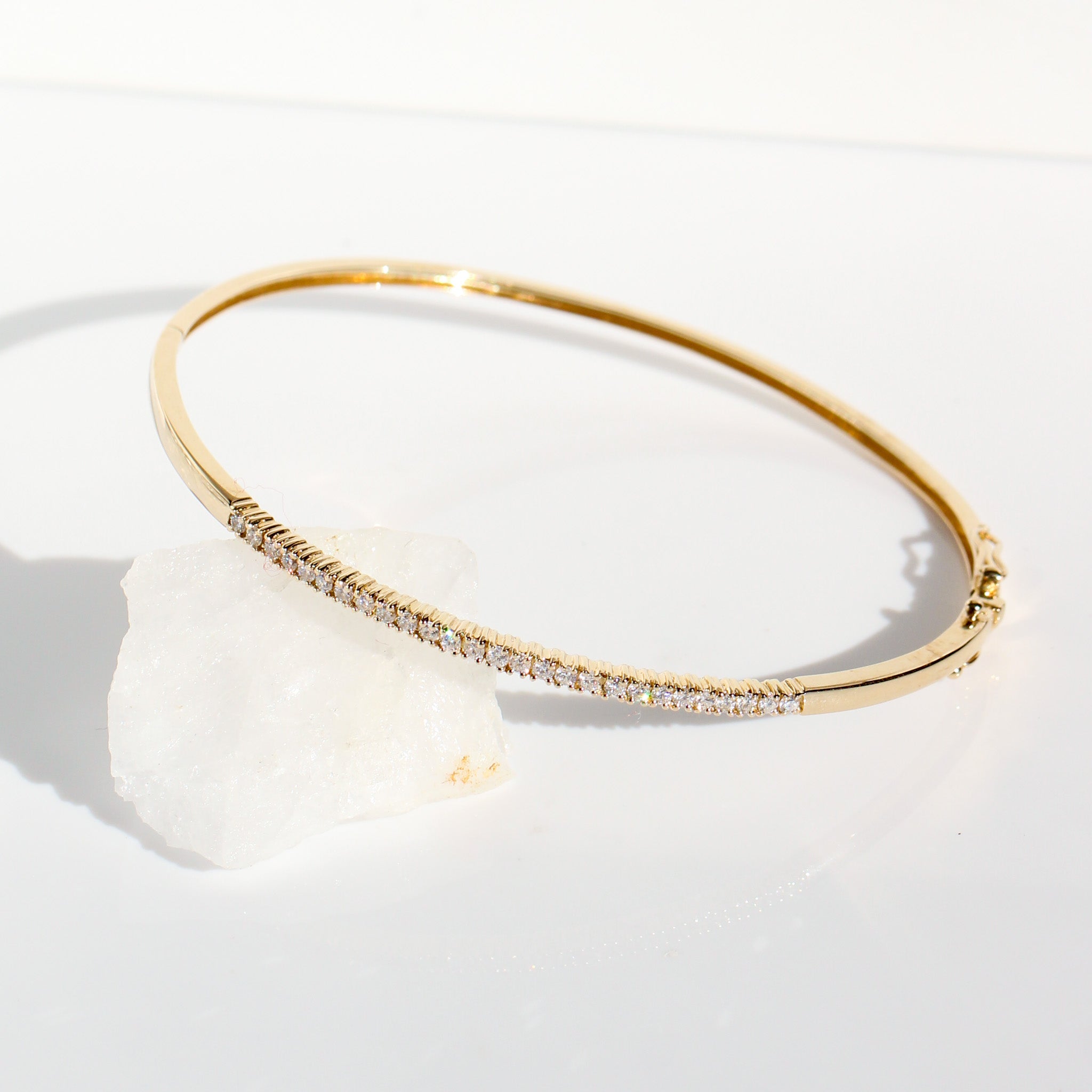 Timeless elegance meets everyday luxury in this 14K Solid Yellow Gold Diamond Bangle. Crafted from solid 14K yellow gold, it features sparkling diamonds that catch the light with every movement, creating a refined and sophisticated look. Perfect for stacking or wearing solo, this versatile bangle is a must-have addition to any fine jewelry collection.